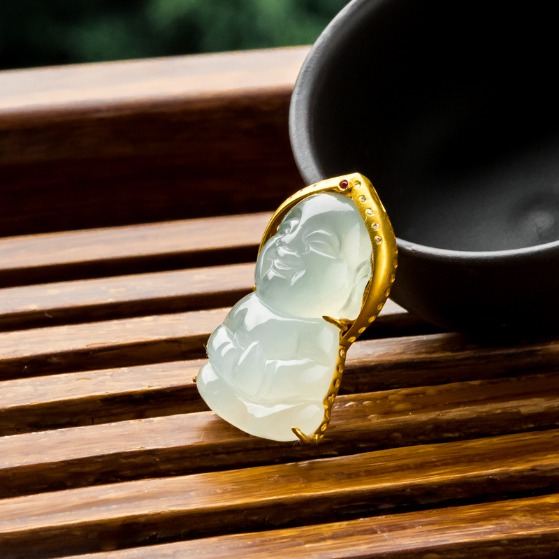 • [名  称] 18K糯冰种翡翠宝宝佛吊坠