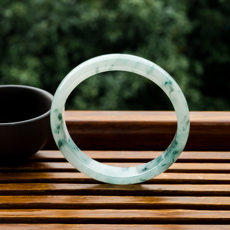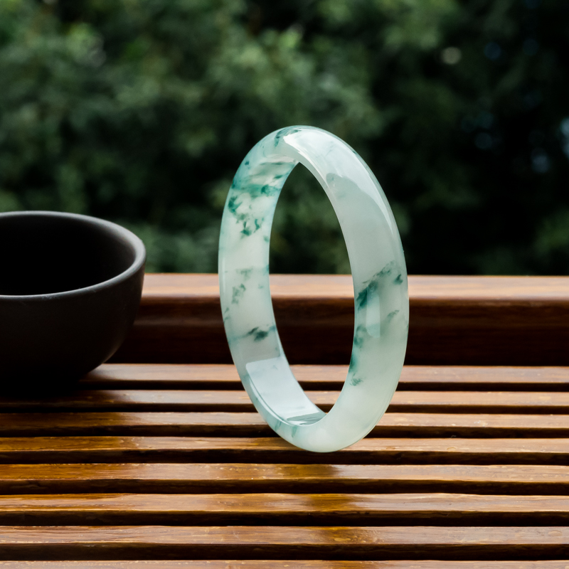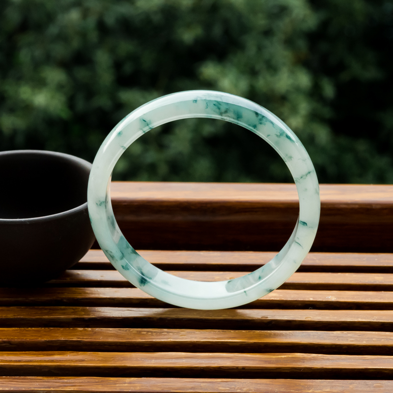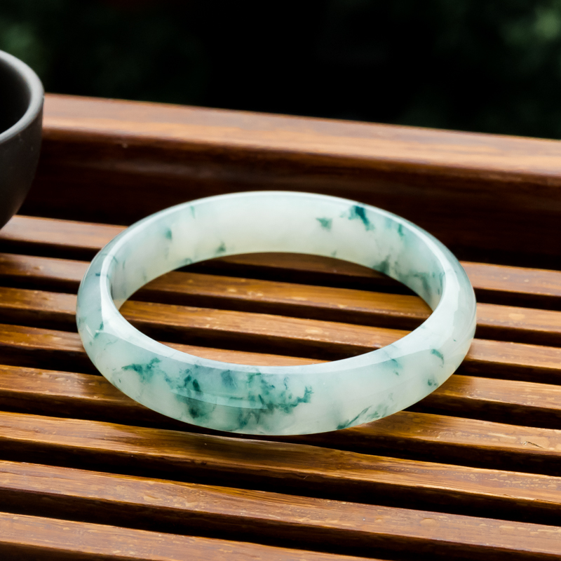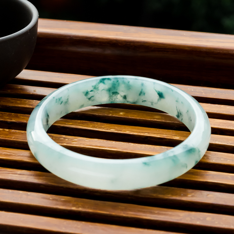 • [名  称] 53.5mm糯冰种飘花翡翠平安镯