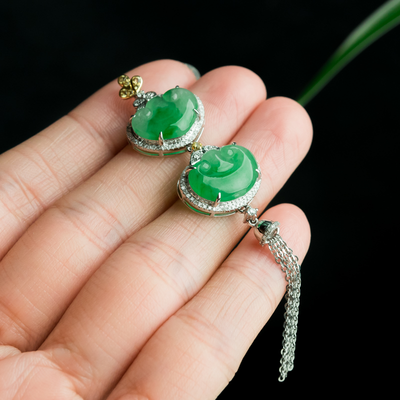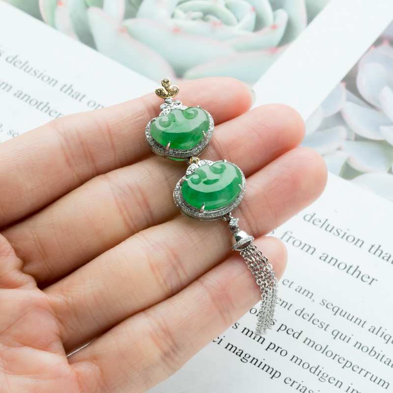 • [名  称] 18K糯冰种飘翠翡翠如意吊坠