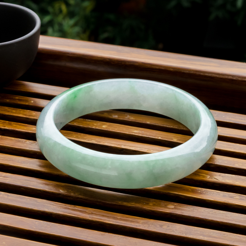 • [名  称] 58mm糯冰种飘翠翡翠平安镯