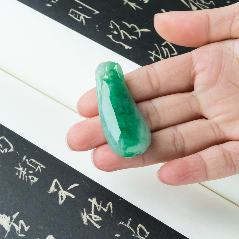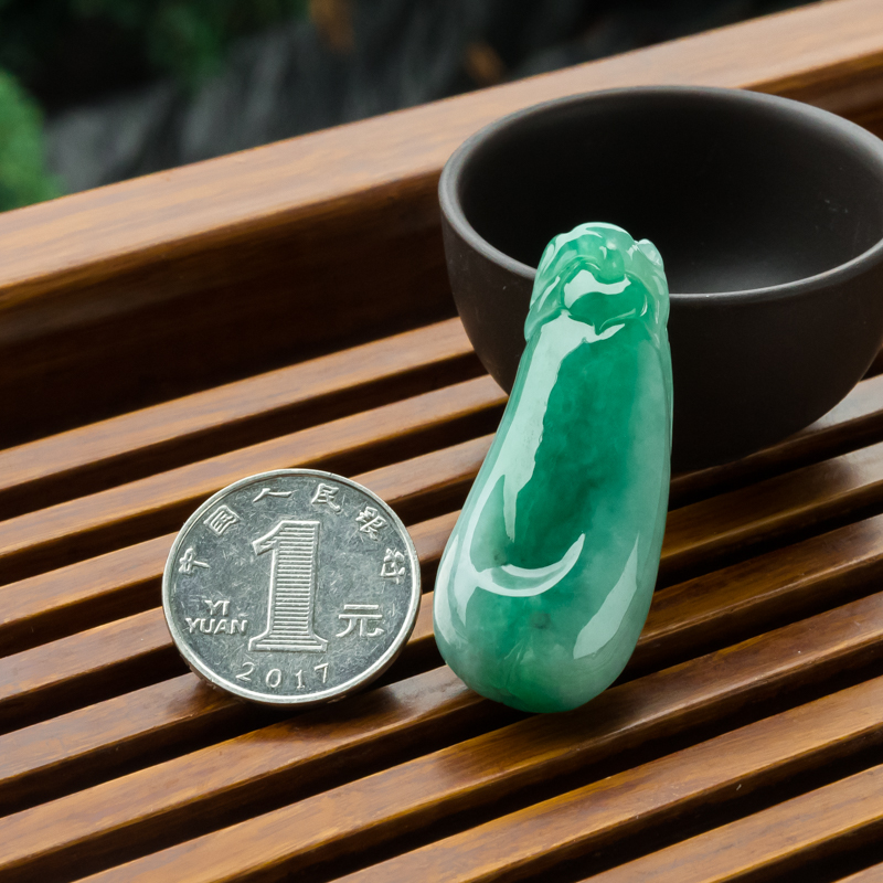 • 糯冰种翠绿翡翠福瓜吊坠