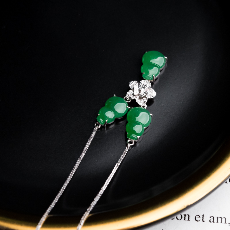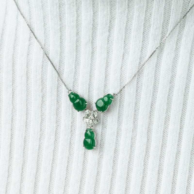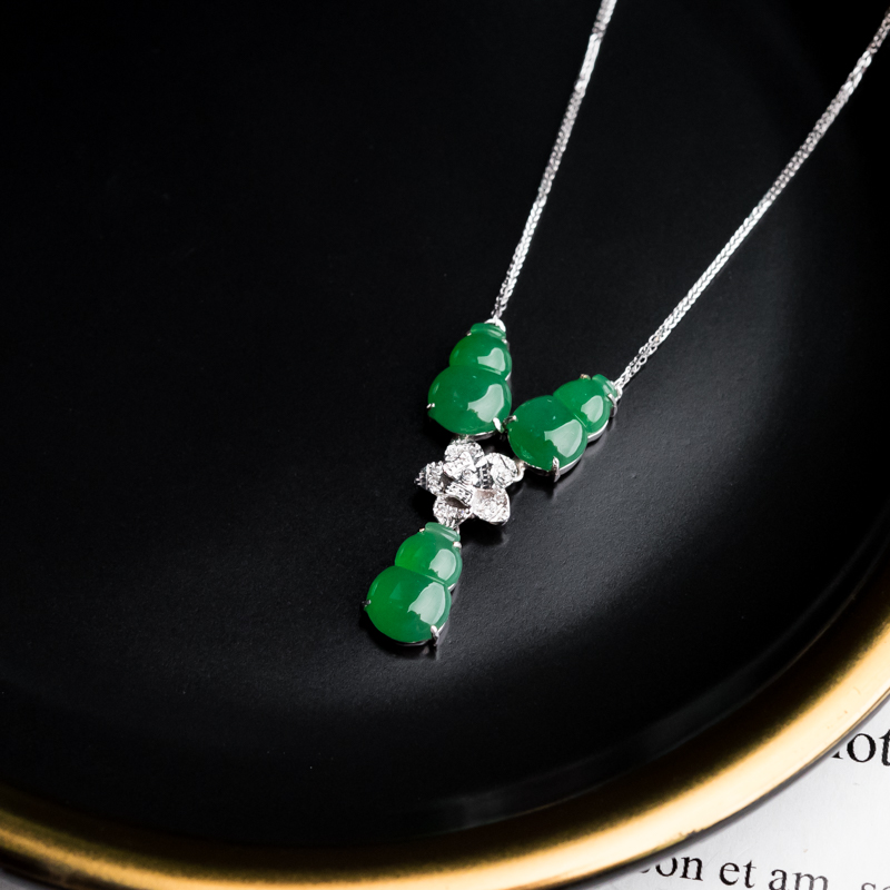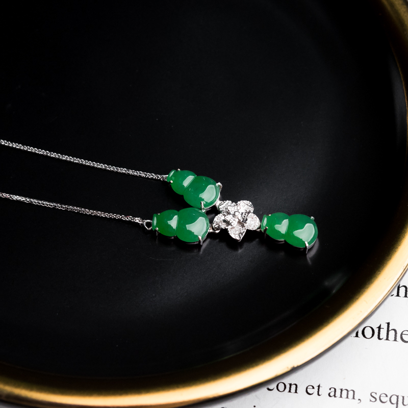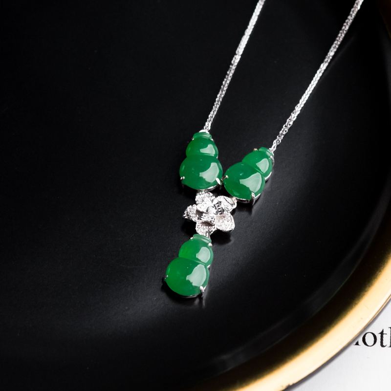 • 18K糯冰种翠绿翡翠福禄项链