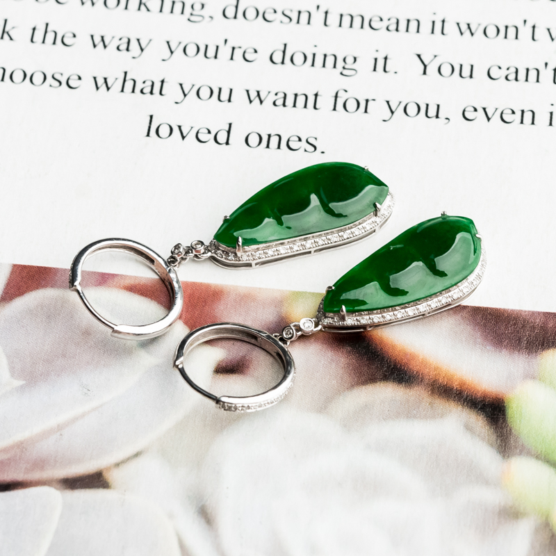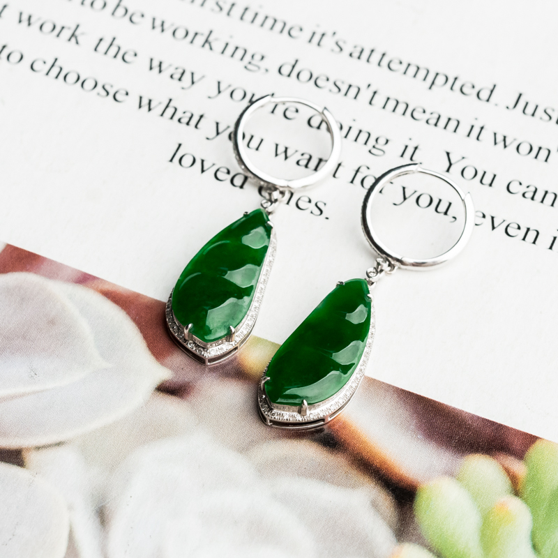 • 18K糯冰种阳绿翡翠福豆耳坠