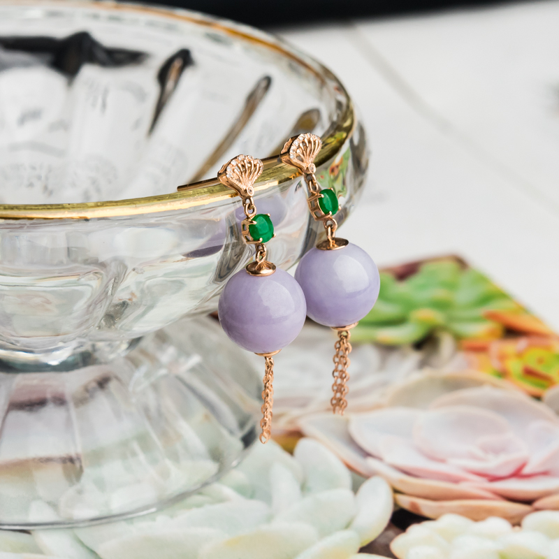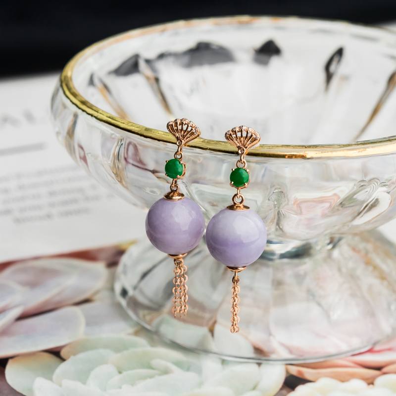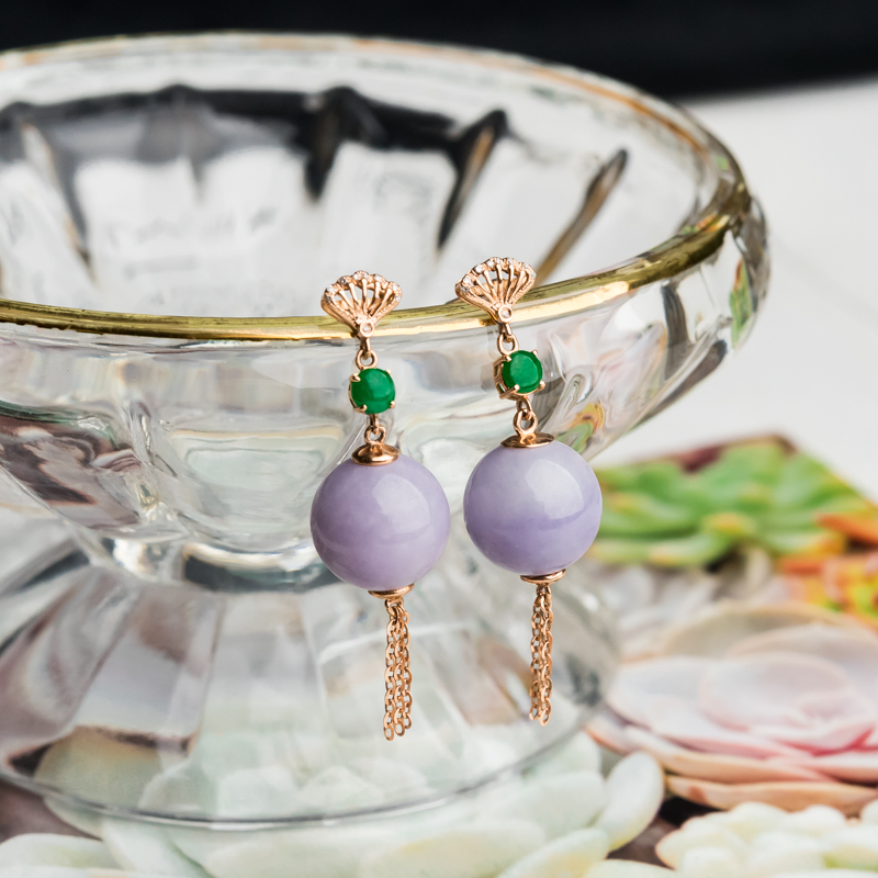 • 18K糯冰种紫罗兰翡翠耳坠