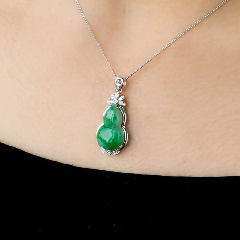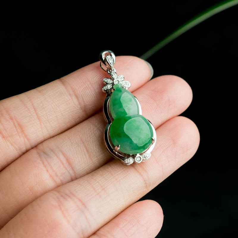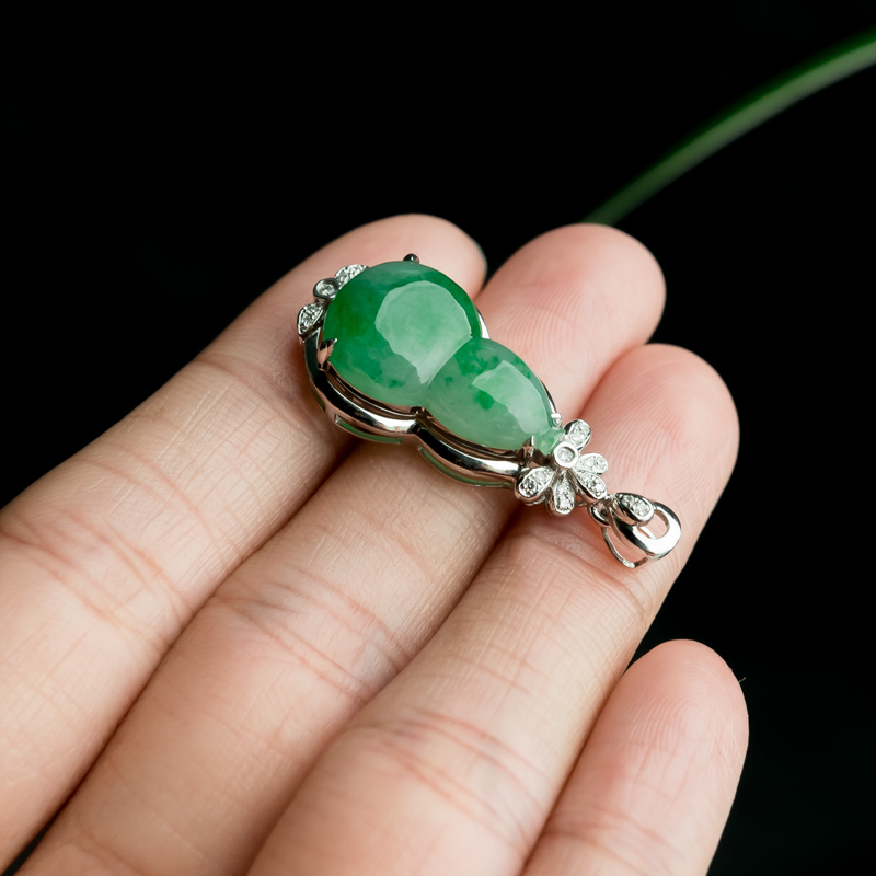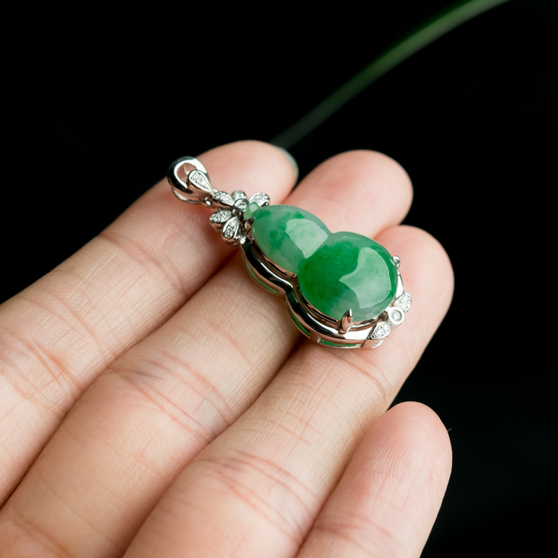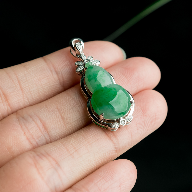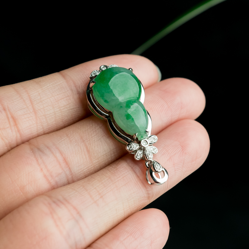 • 18K糯冰种飘翠翡翠福禄吊坠