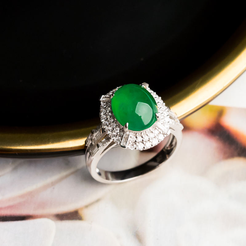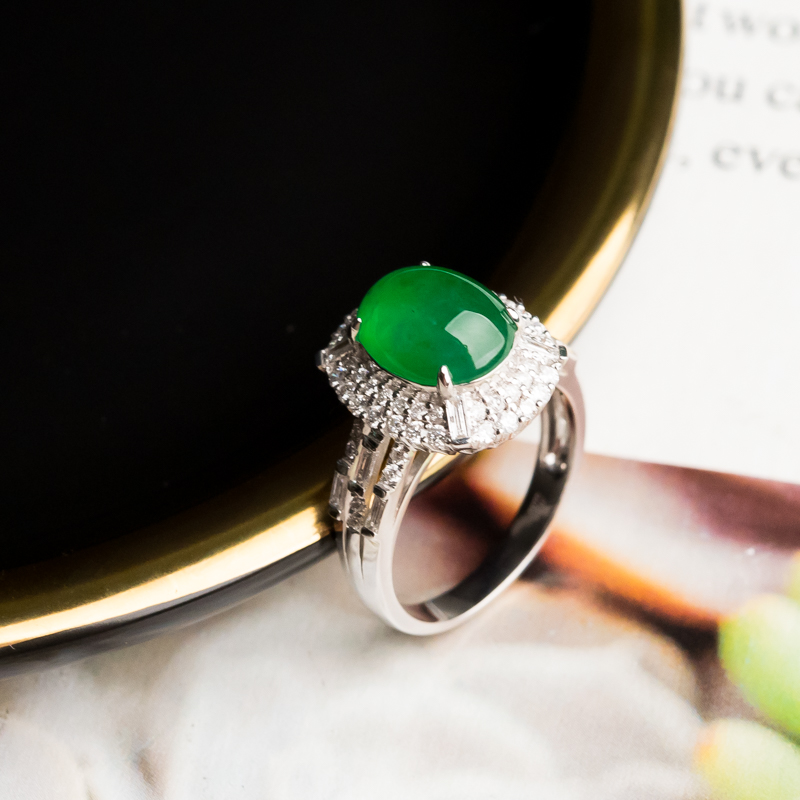 • [名  称] 18K糯冰种翠绿翡翠戒指
