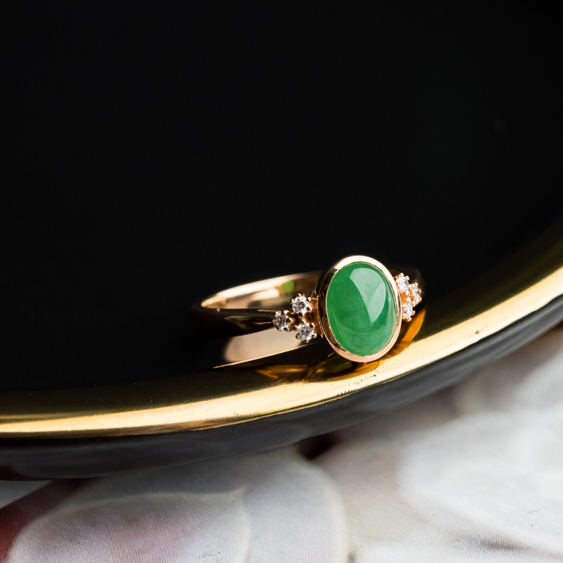 • 18K糯冰种翠绿翡翠戒指