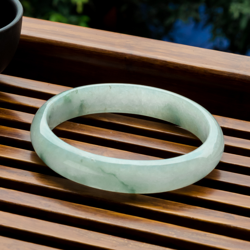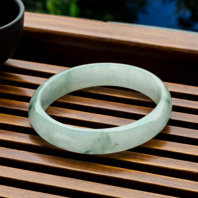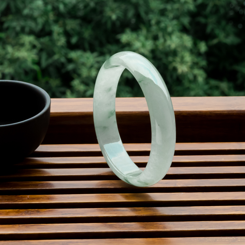 • [名  称] 53mm糯冰种飘花翡翠贵妃镯