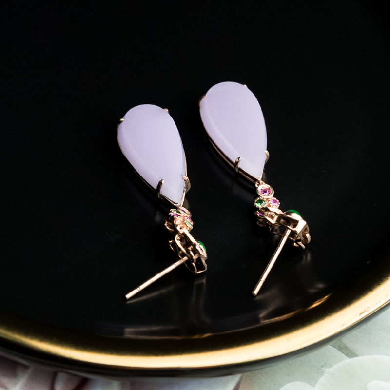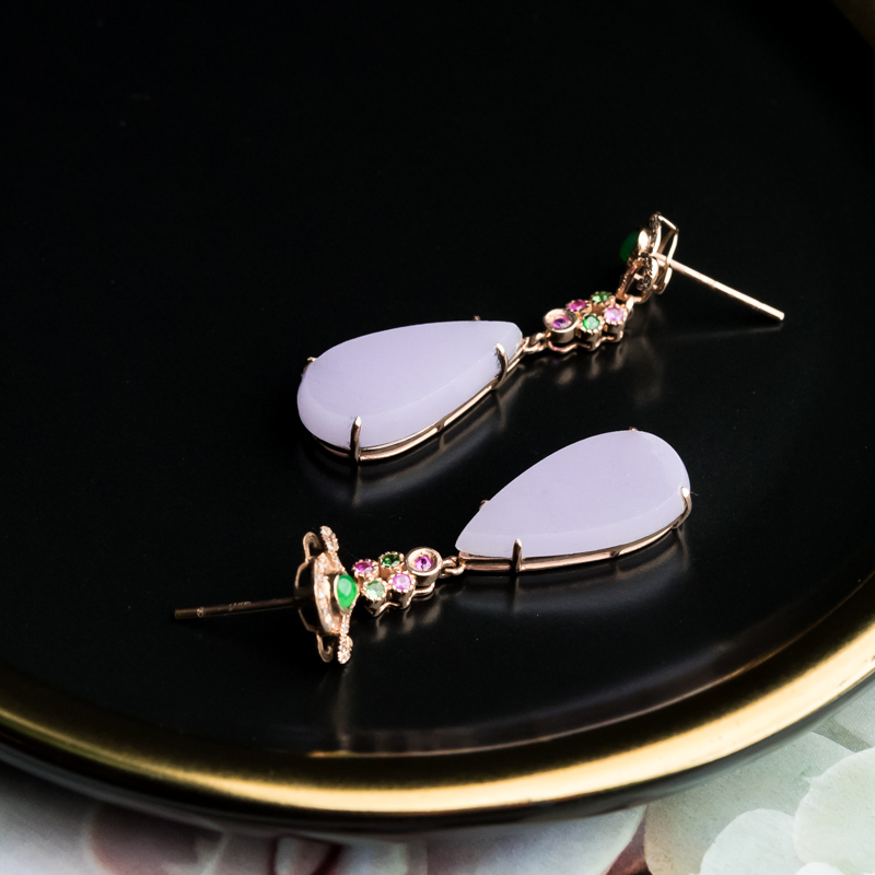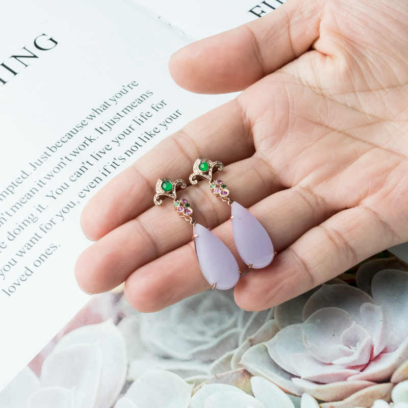 • 18K糯冰种紫罗兰翡翠耳坠