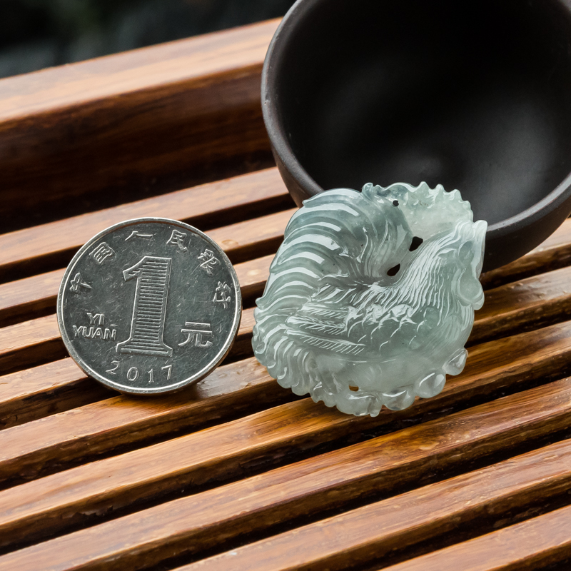 • [名  称] 糯冰种翡翠金鸡报晓吊坠