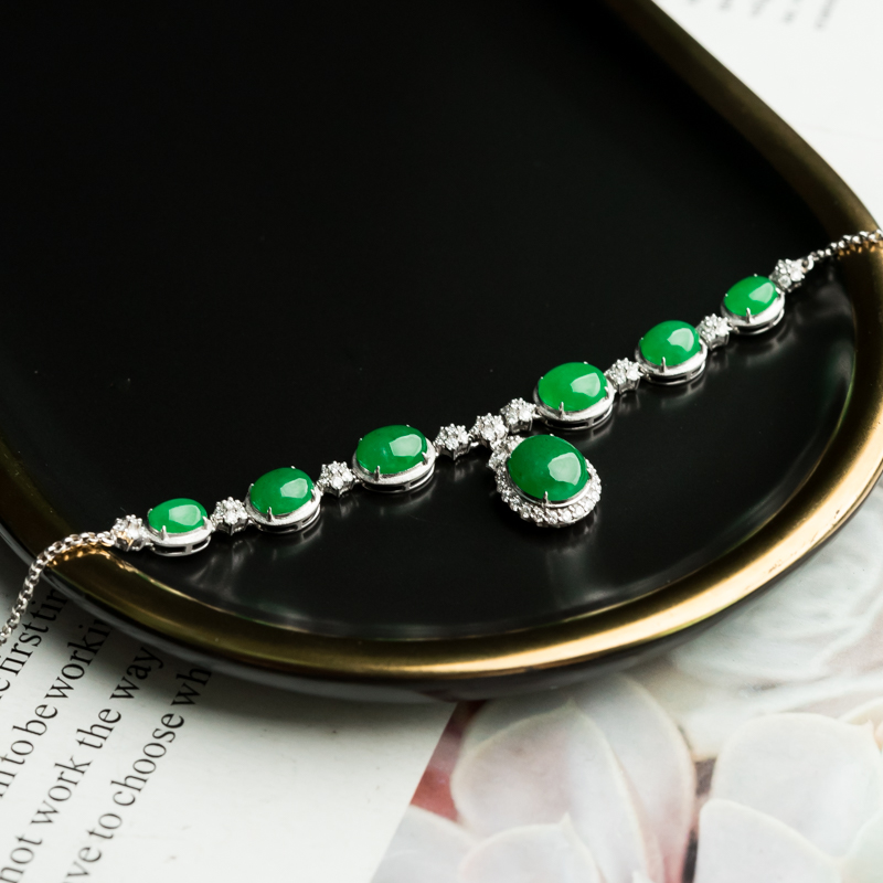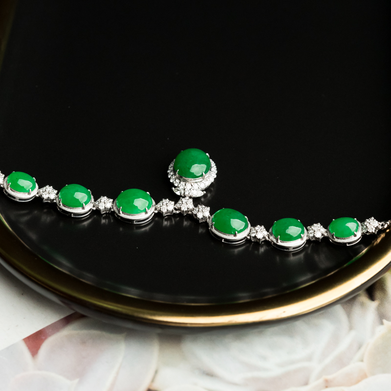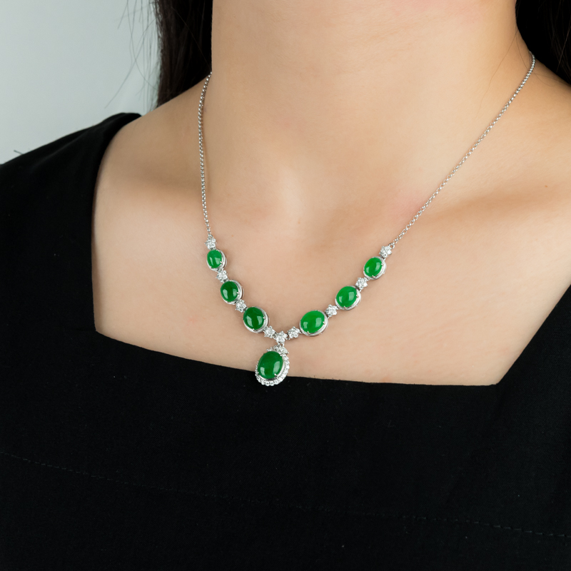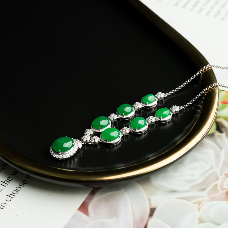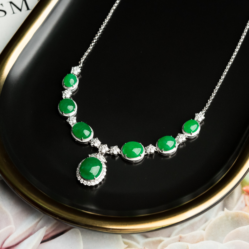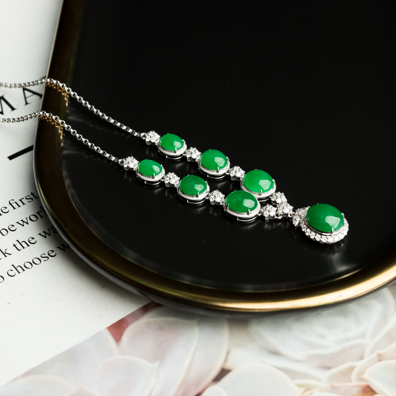 • [名  称] 18K糯冰种阳绿翡翠项链