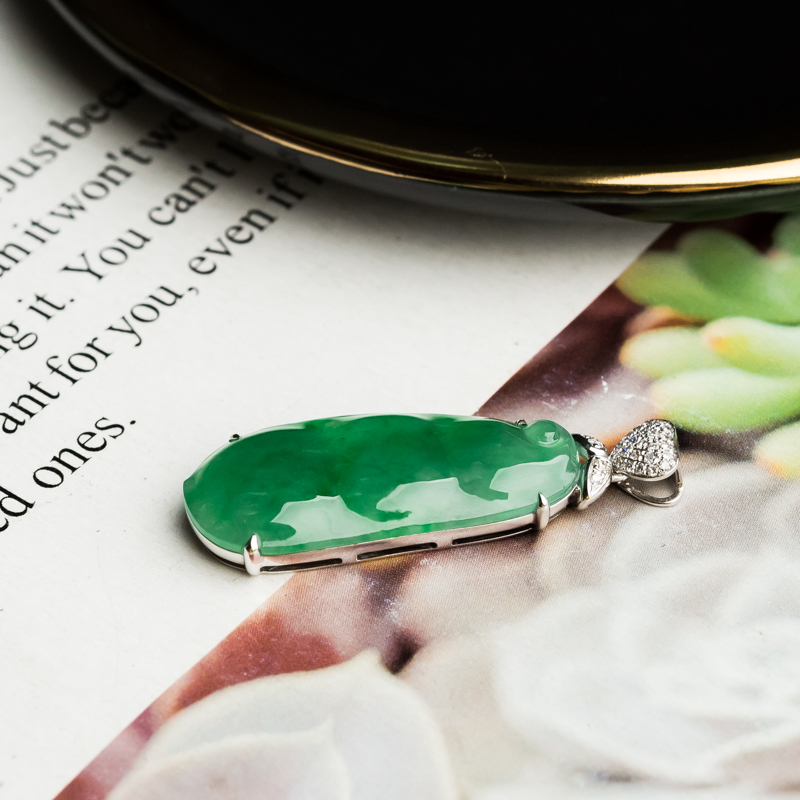 • [名  称] 18K糯冰种翠绿翡翠福豆吊坠