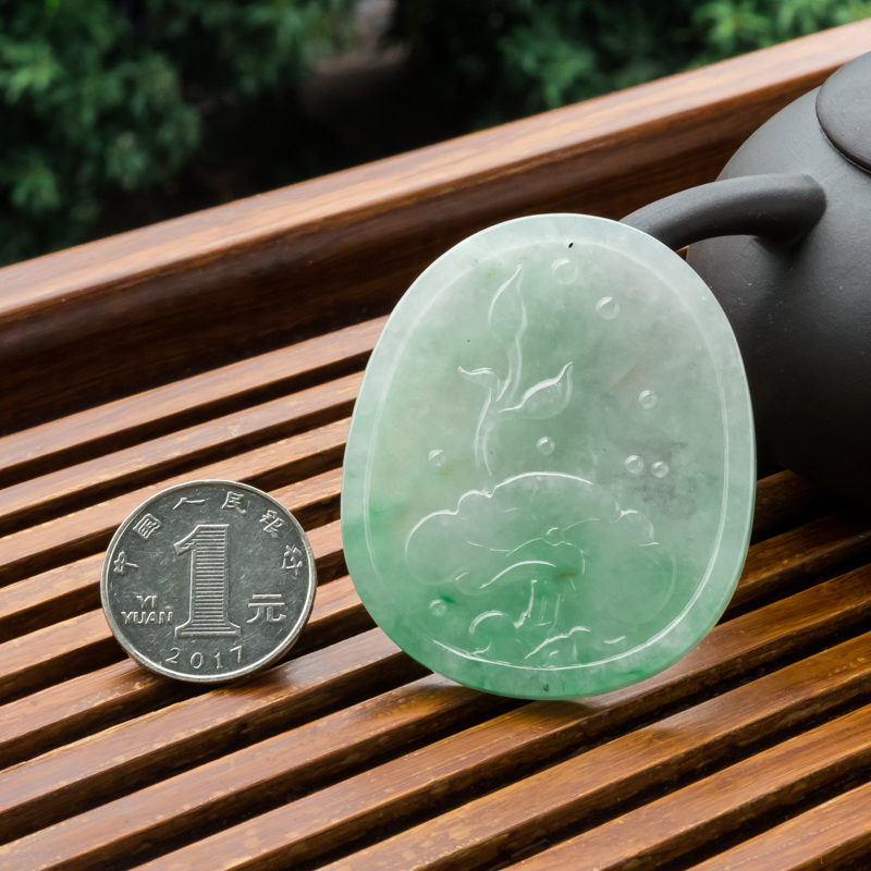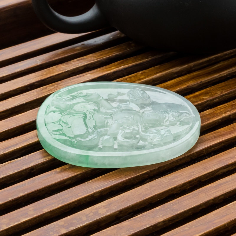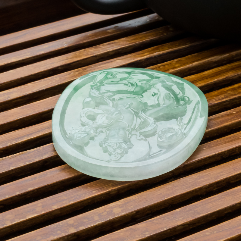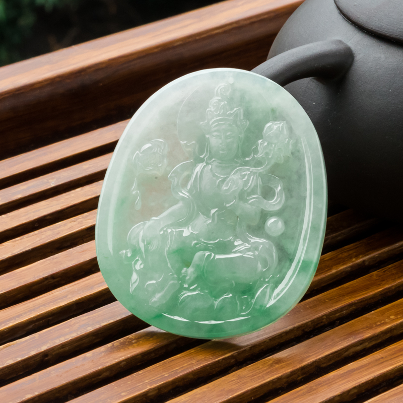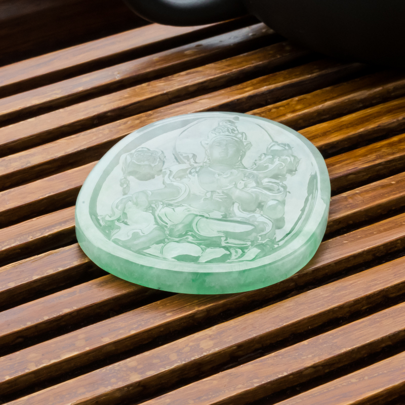 • 糯冰种飘翠翡翠大势至吊坠