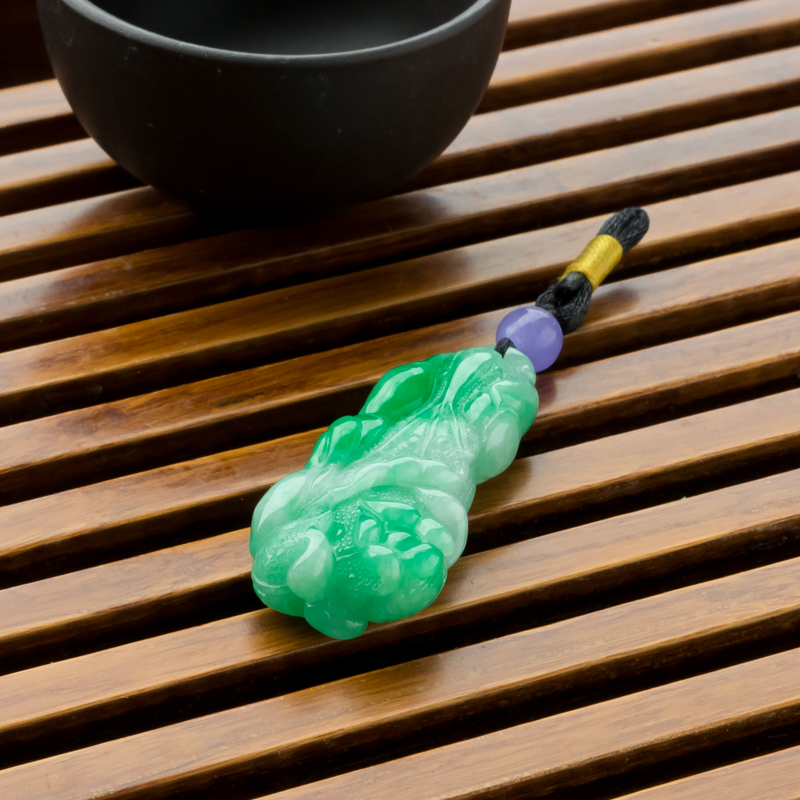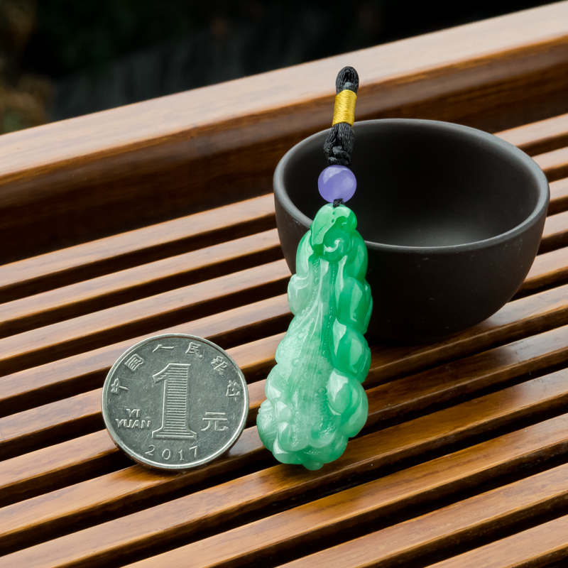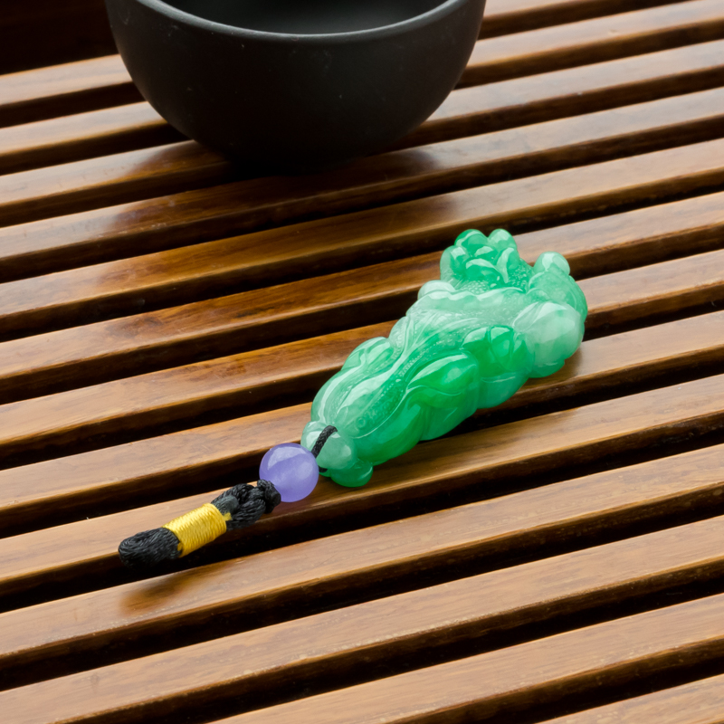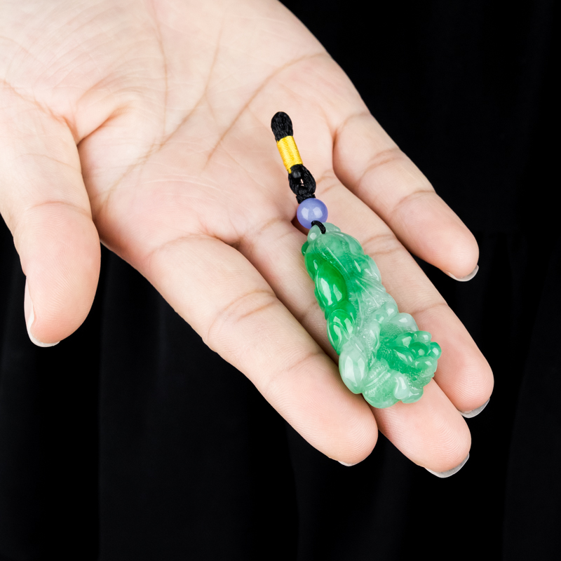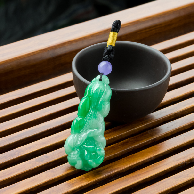 • 糯冰种飘翠翡翠百财吊坠