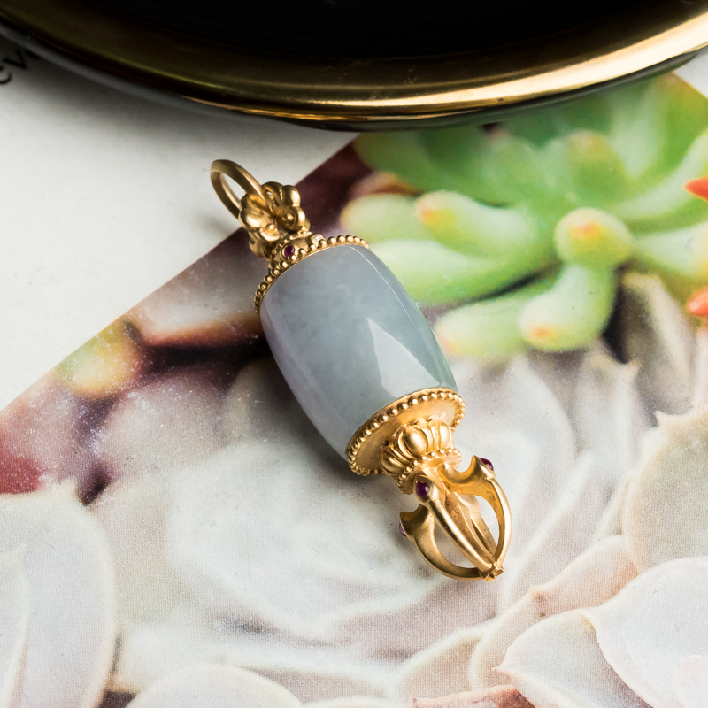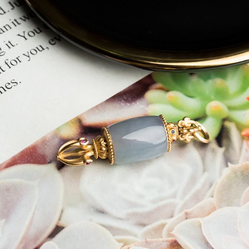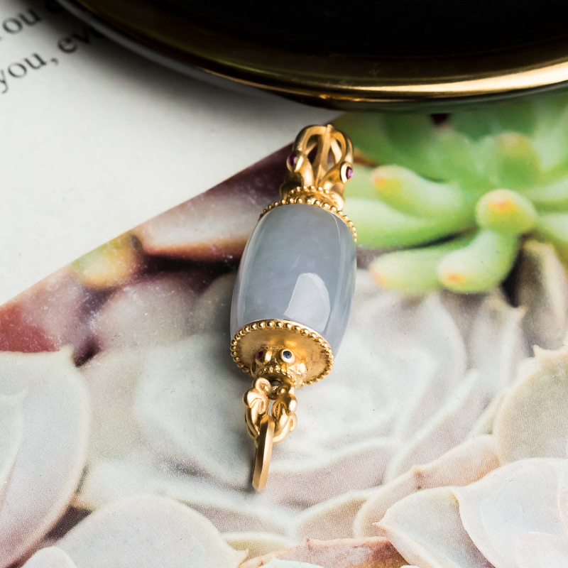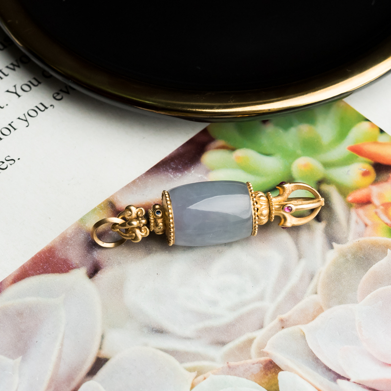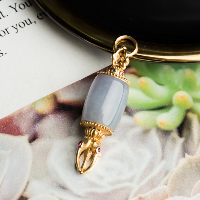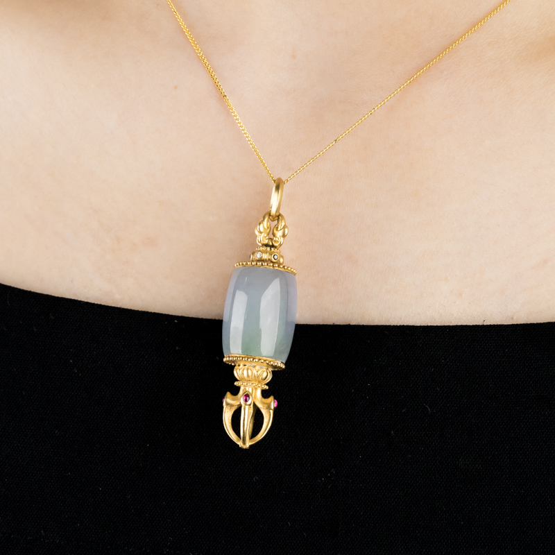 • 18K糯冰种翡翠降魔杵吊坠