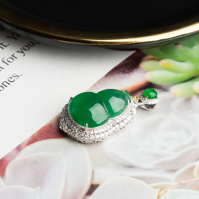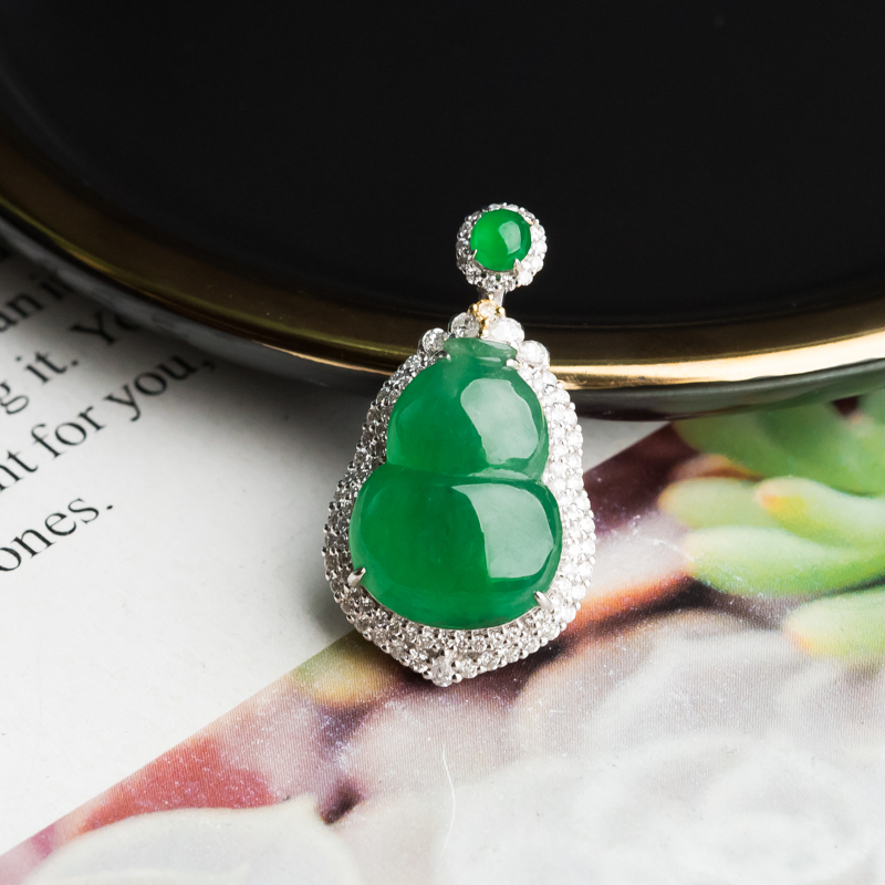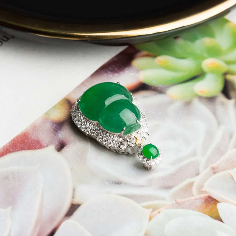 • 18K糯冰种翠绿翡翠福禄吊坠