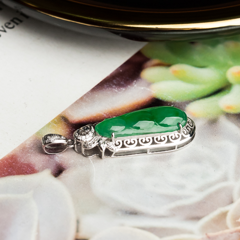 • [名  称] 18K糯冰种翠绿翡翠福豆吊坠