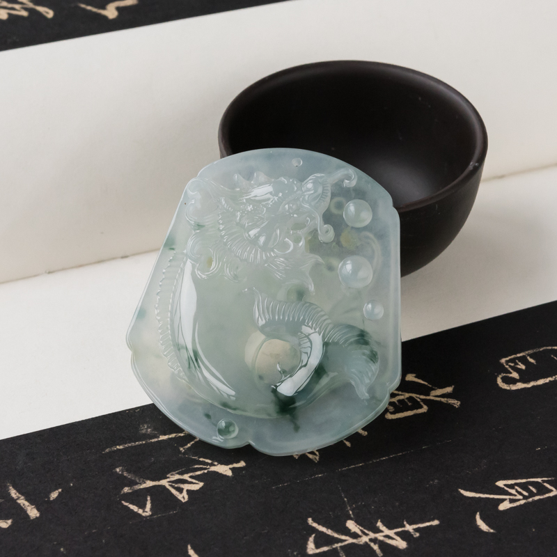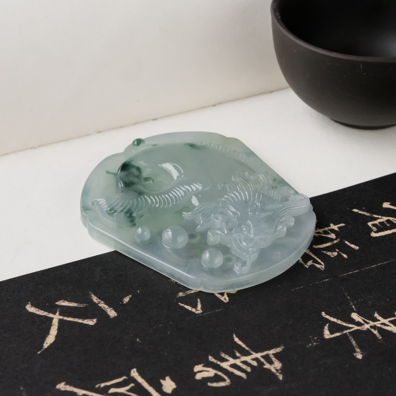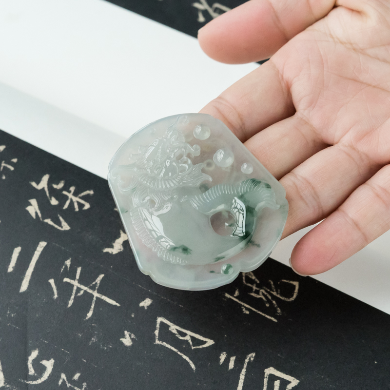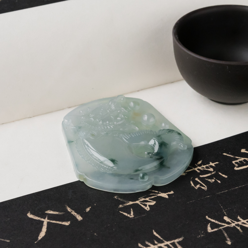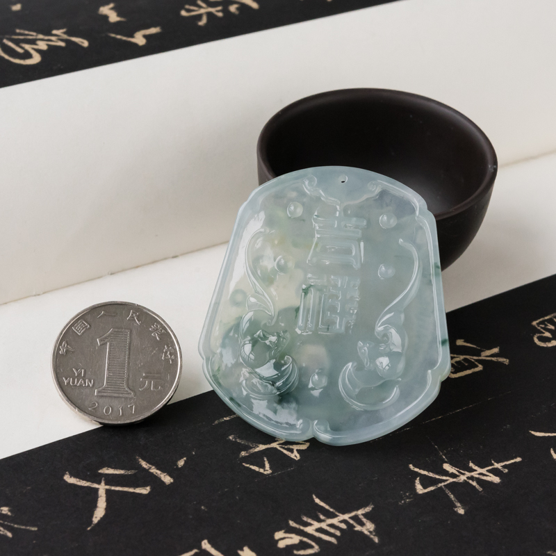 • 糯冰种飘花翡翠吉祥吊坠