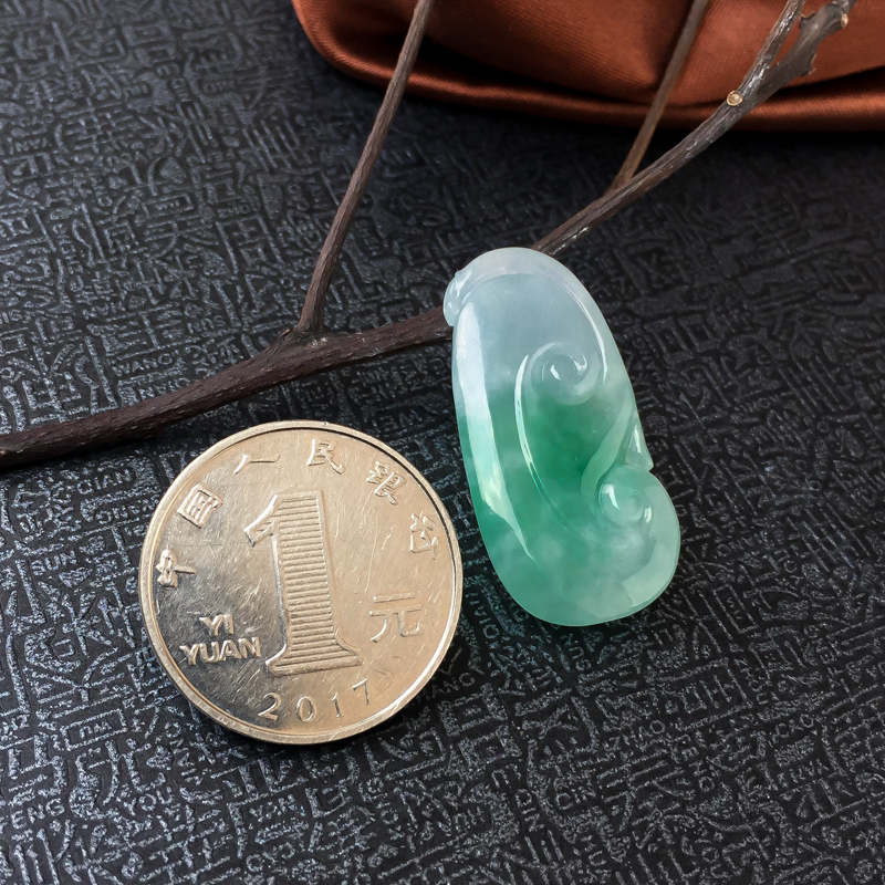 • 糯冰种飘翠翡翠如意吊坠