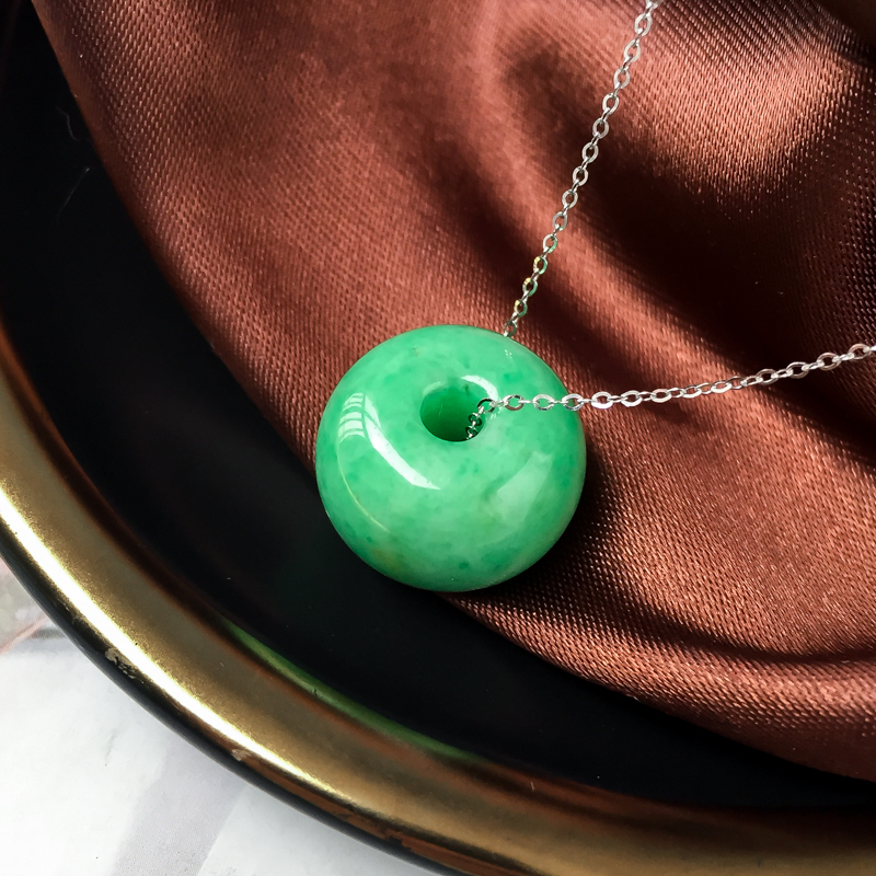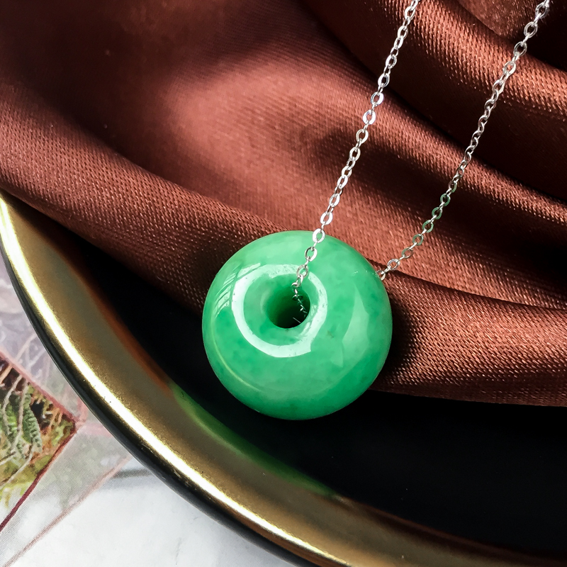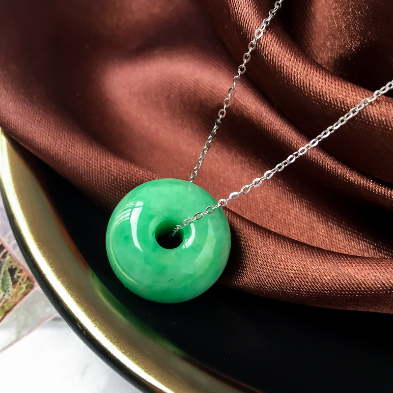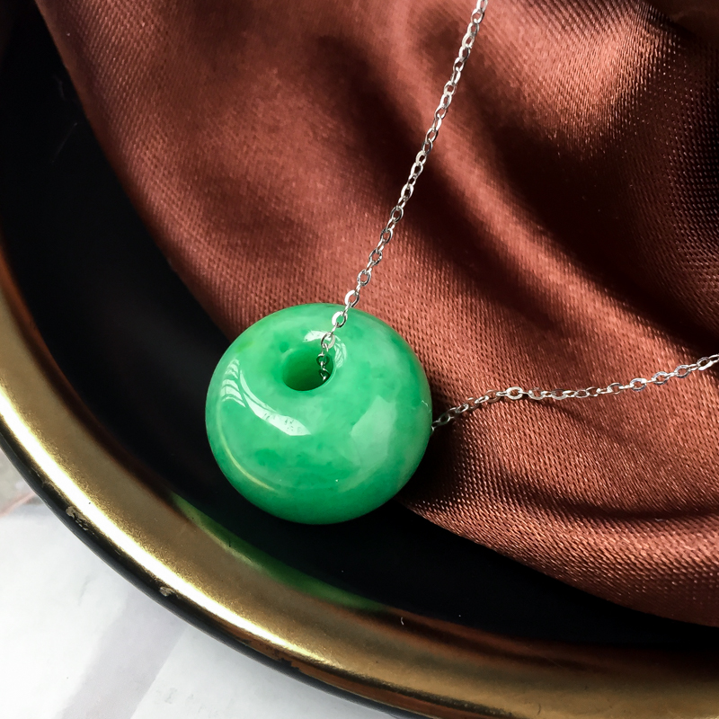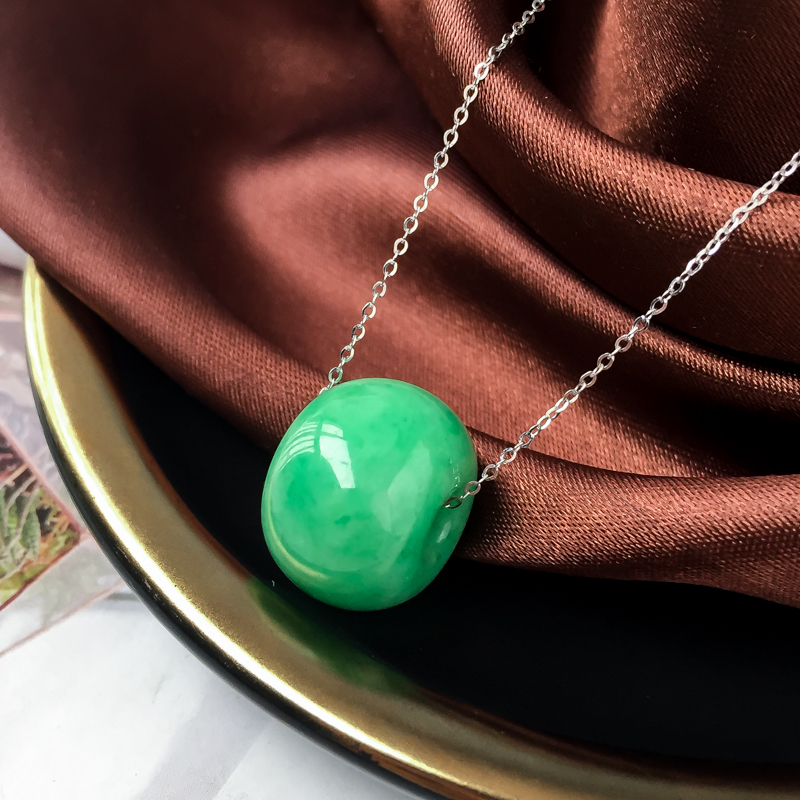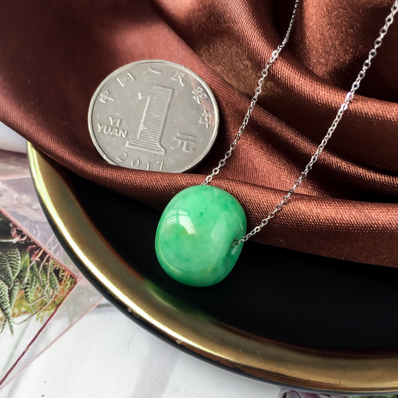 • 糯冰种豆绿翡翠路路通吊坠