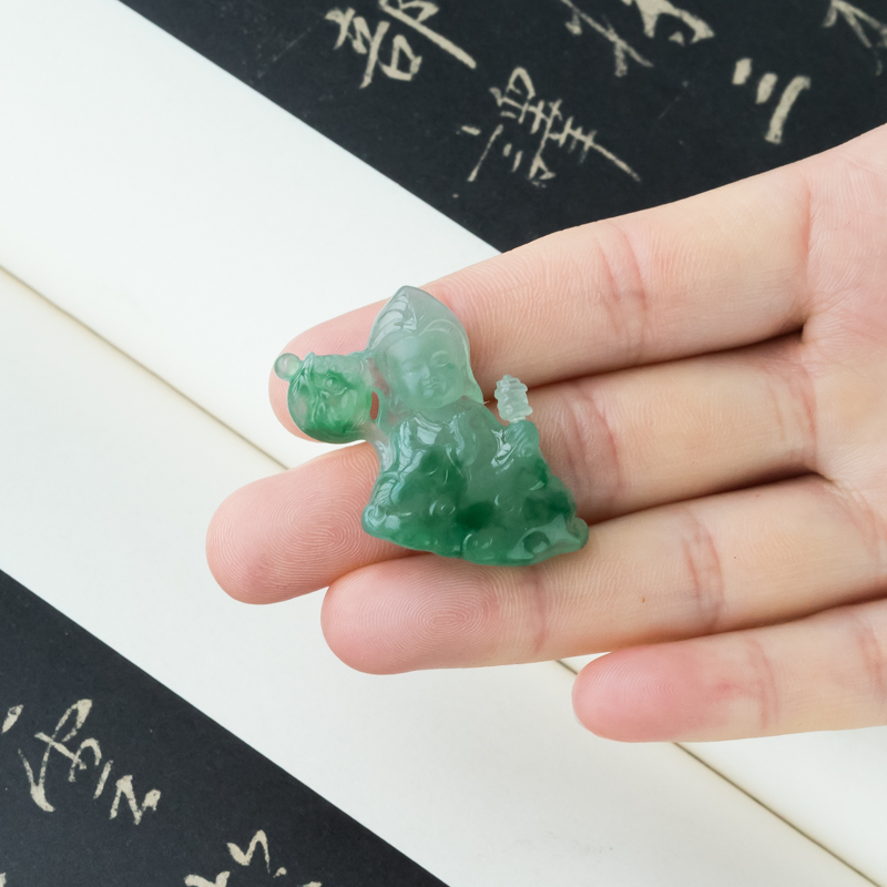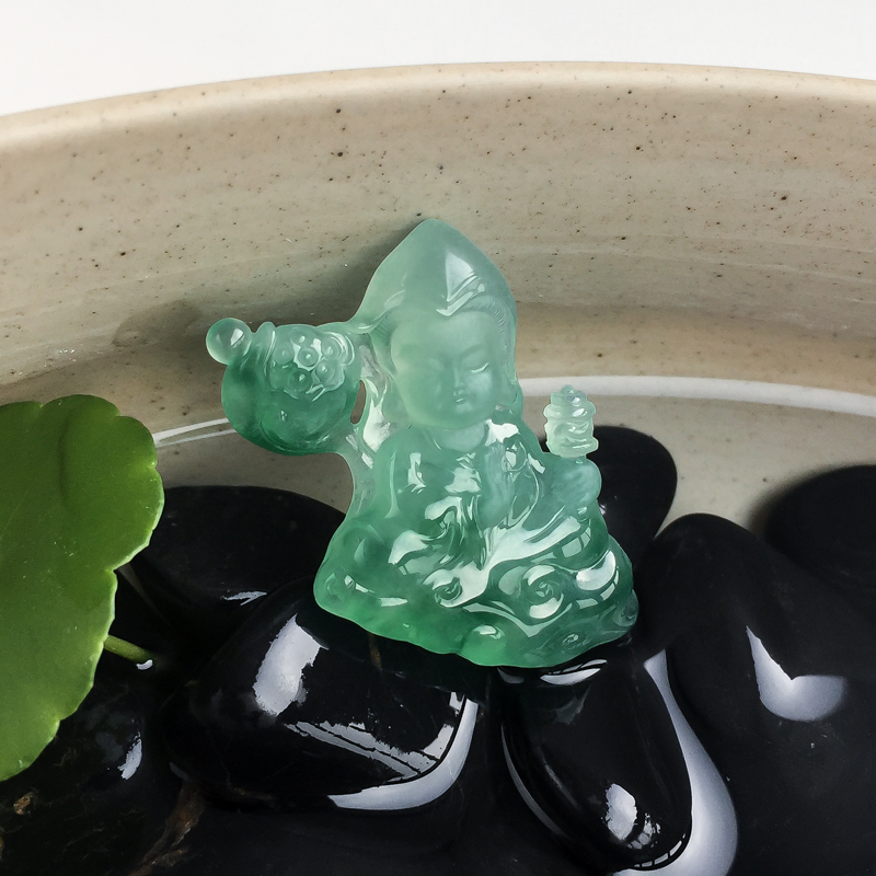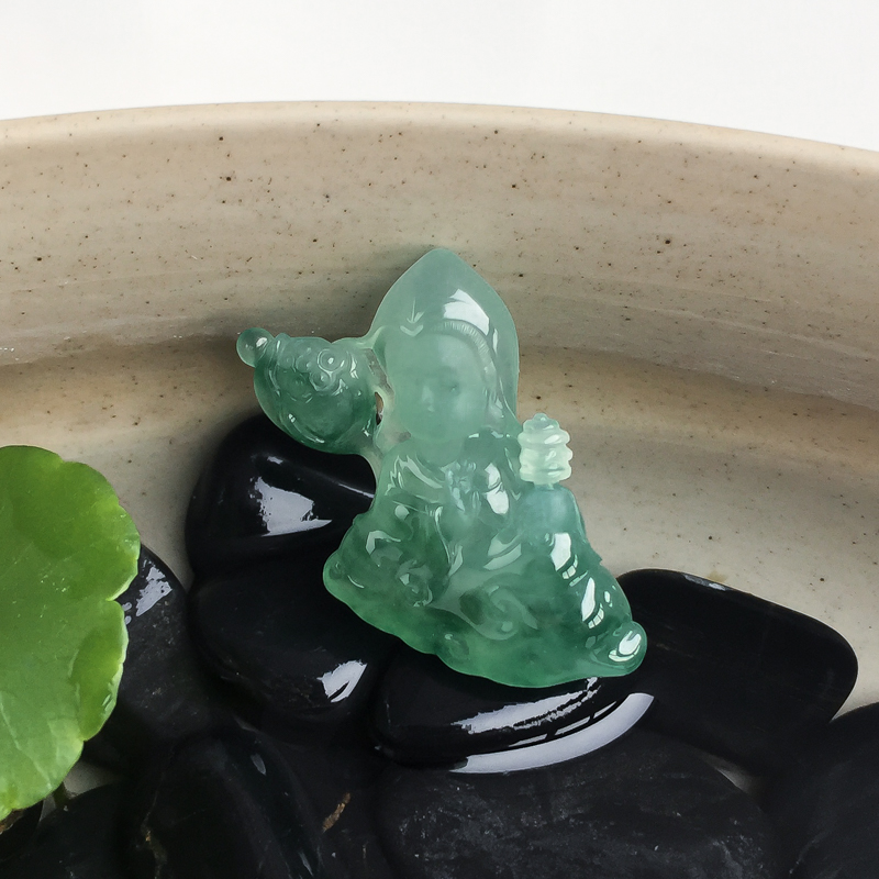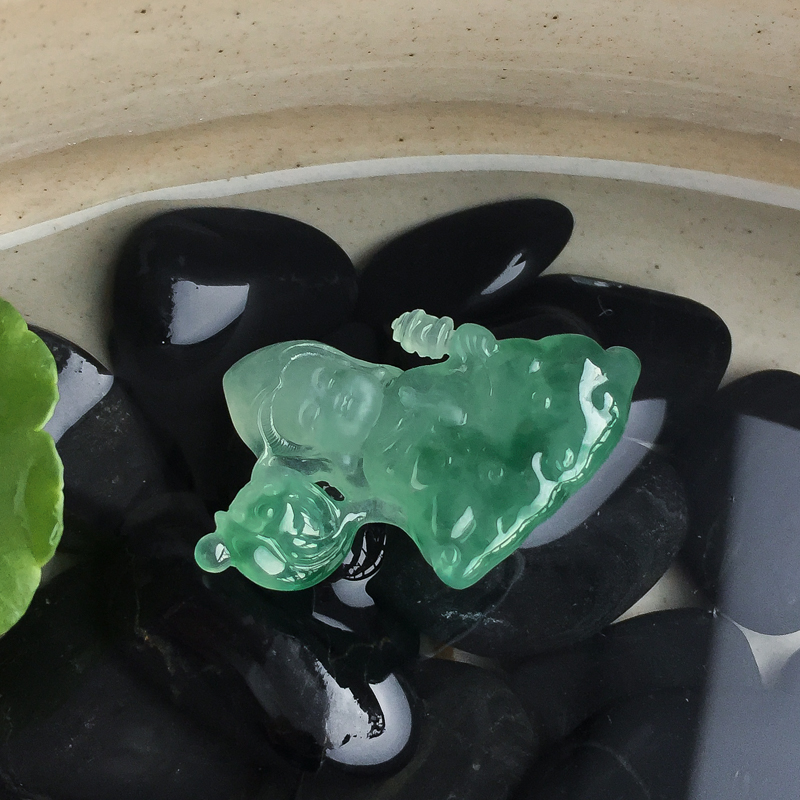 • 糯冰种飘翠翡翠宝宝佛吊坠