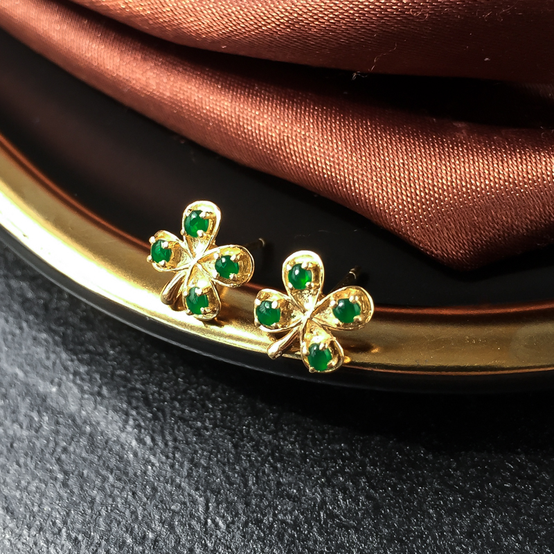 • 18K糯冰种翠绿翡翠耳钉
