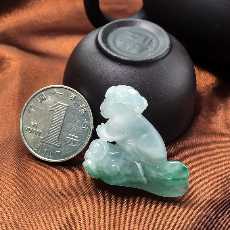 • [名  称] 糯冰种飘翠翡翠瑞兽吊坠