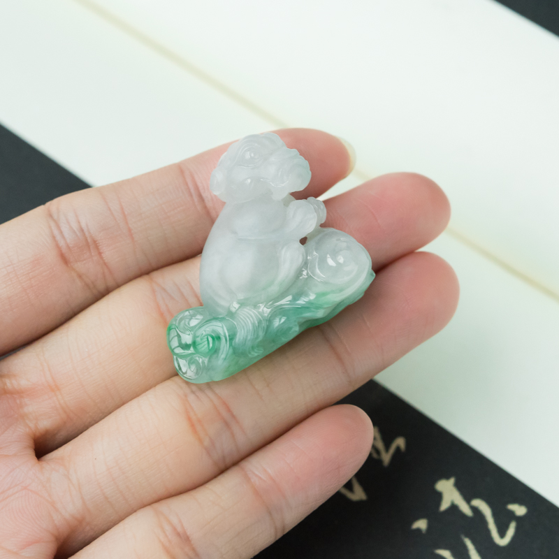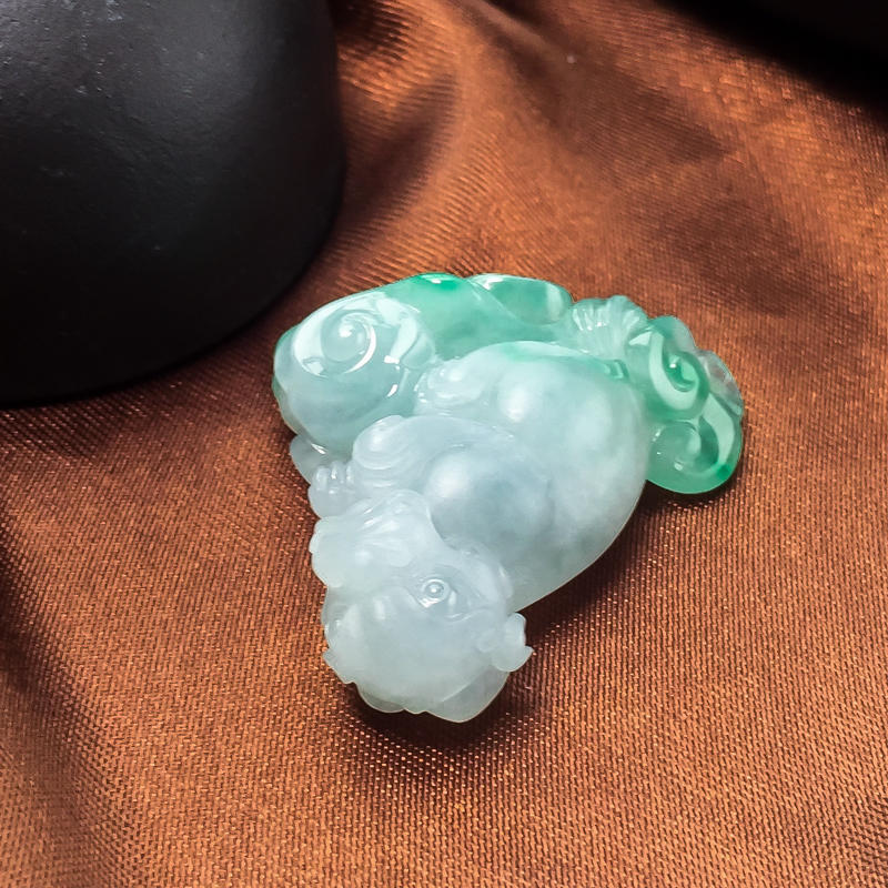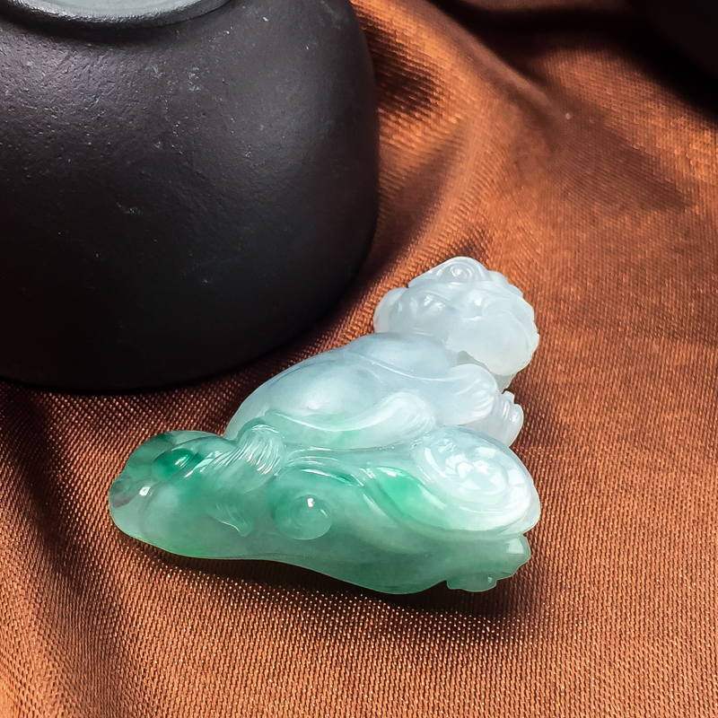 • 糯冰种飘翠翡翠瑞兽吊坠