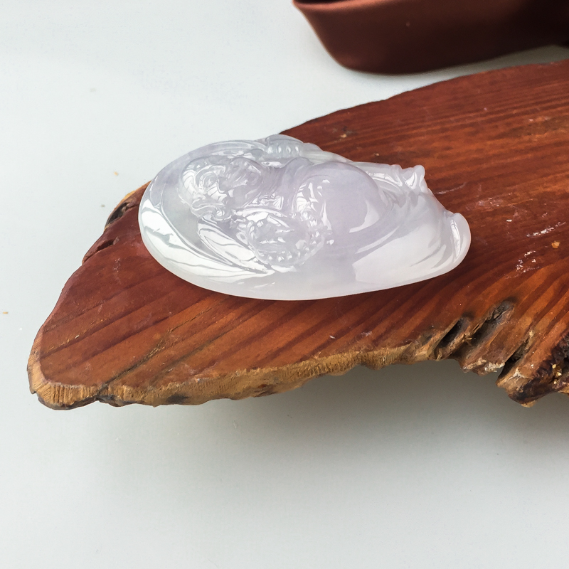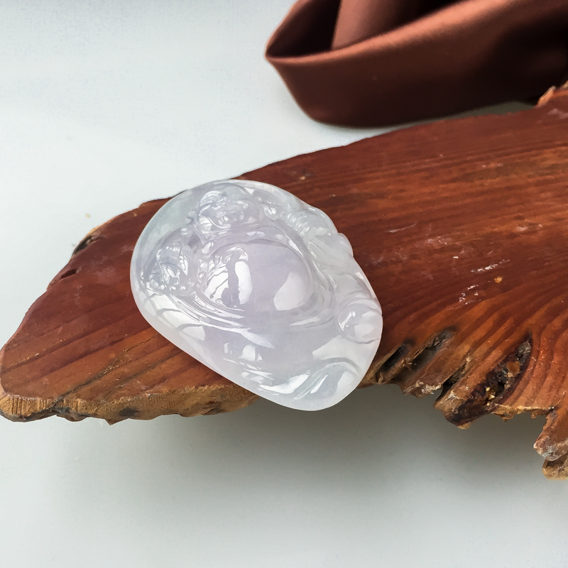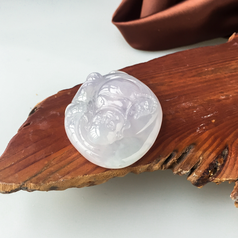 • 糯冰种浅紫翡翠弥勒佛吊坠