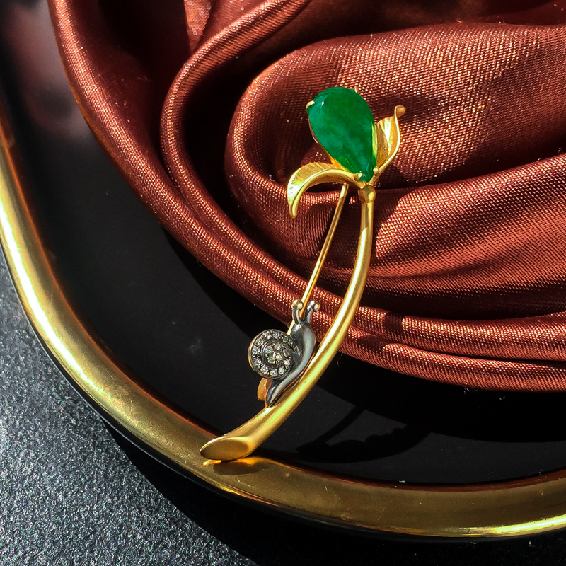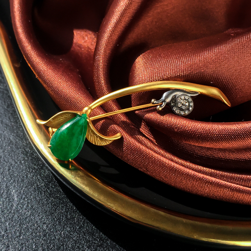 • [名  称] 18K糯冰种翠绿翡翠胸针