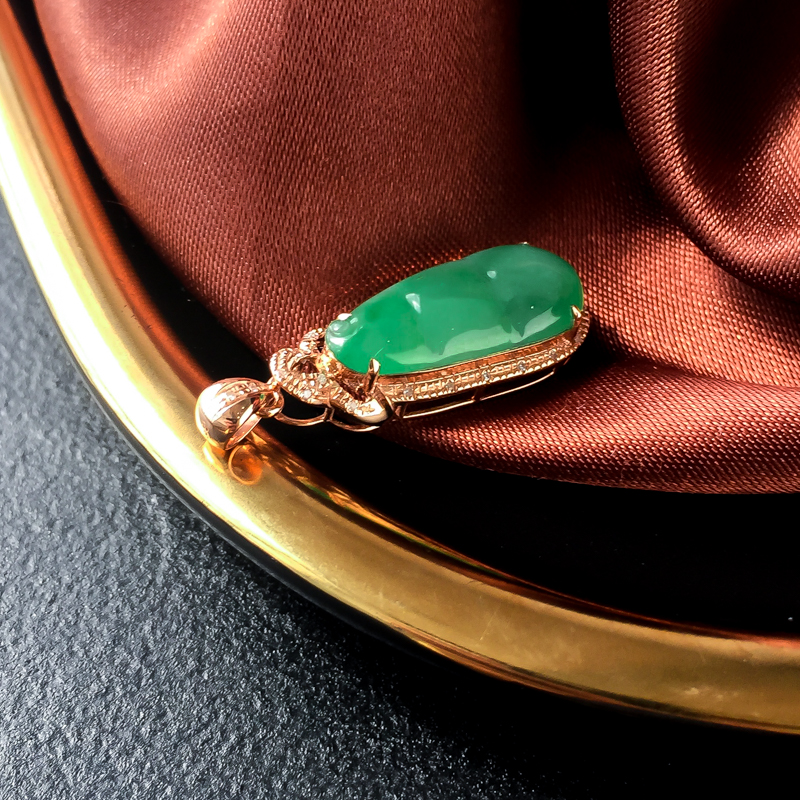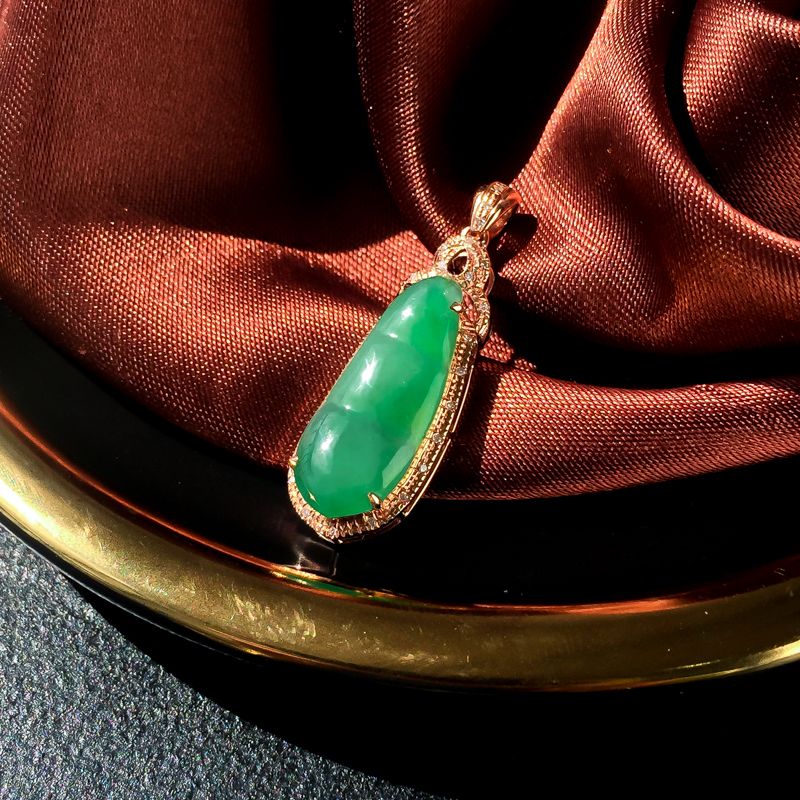 • [名  称] 18K糯冰种翠绿翡翠福豆吊坠