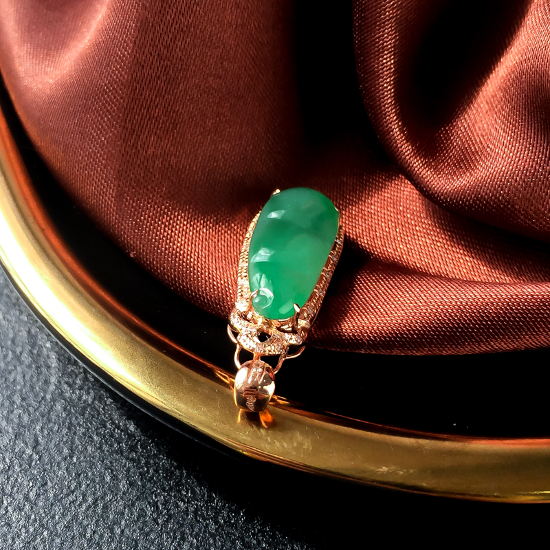 • 18K糯冰种翠绿翡翠福豆吊坠