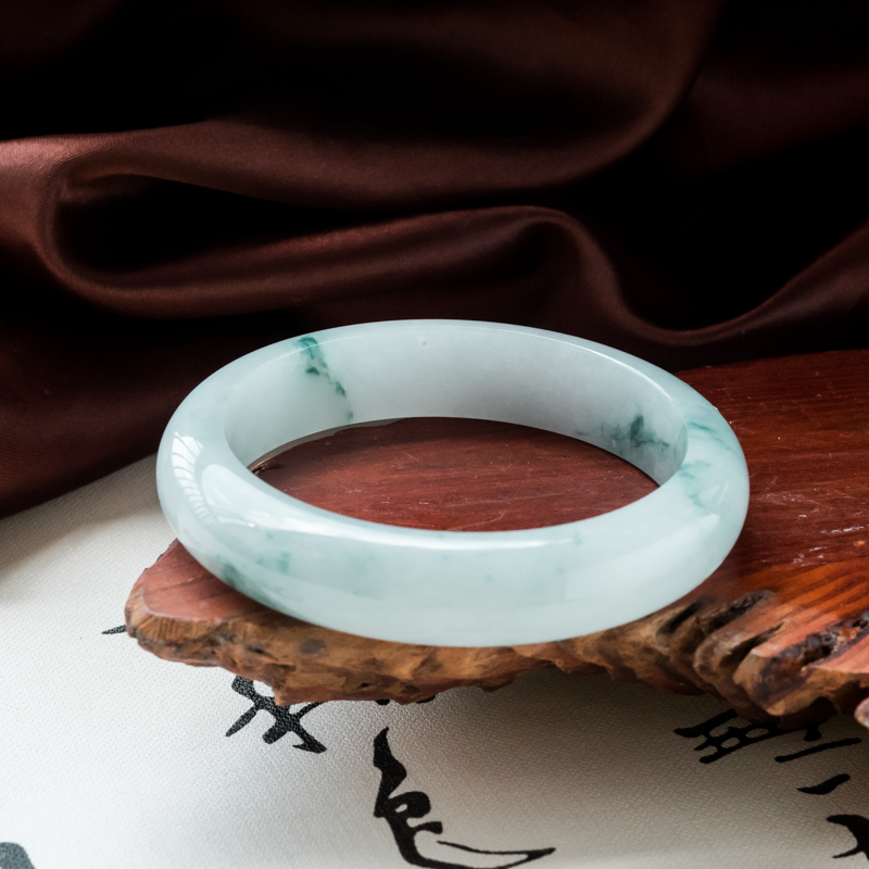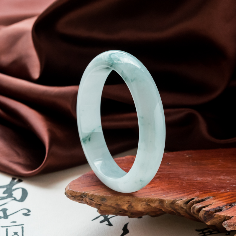 • [名  称] 57.5mm糯冰种飘花翡翠平安镯