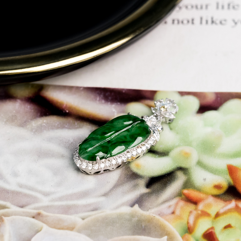 • 18K糯冰种翠绿翡翠金枝玉叶吊坠