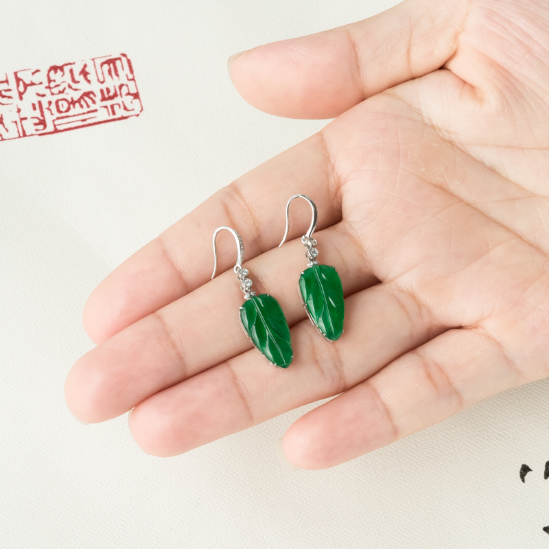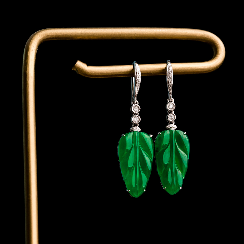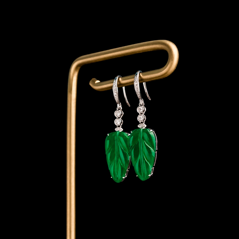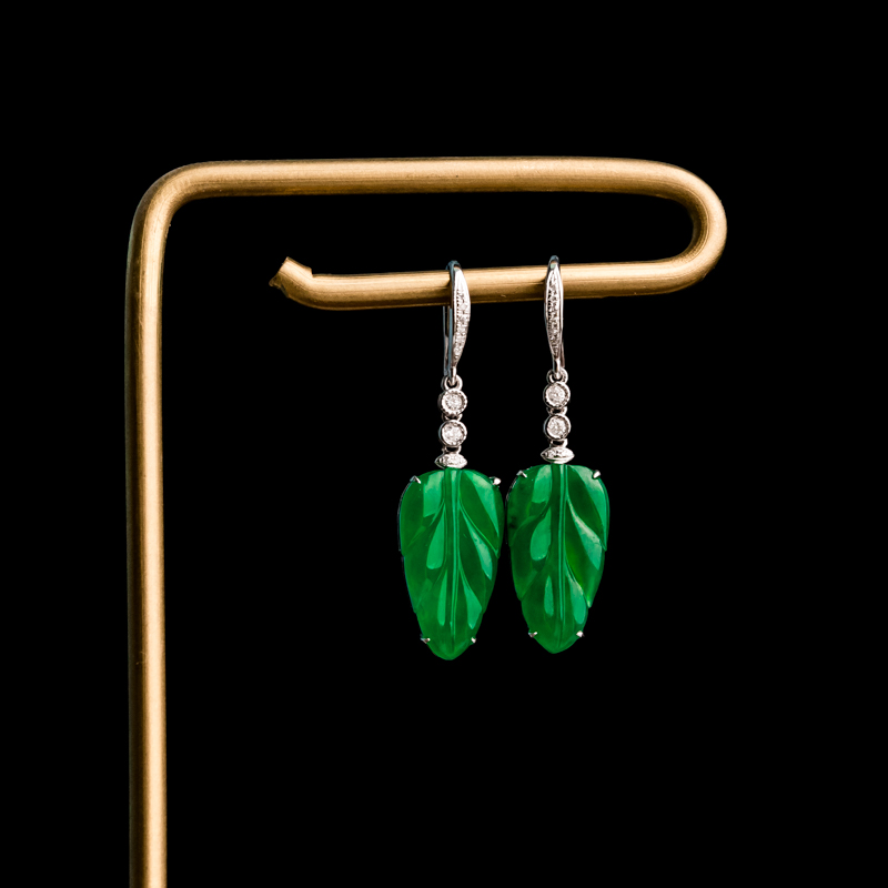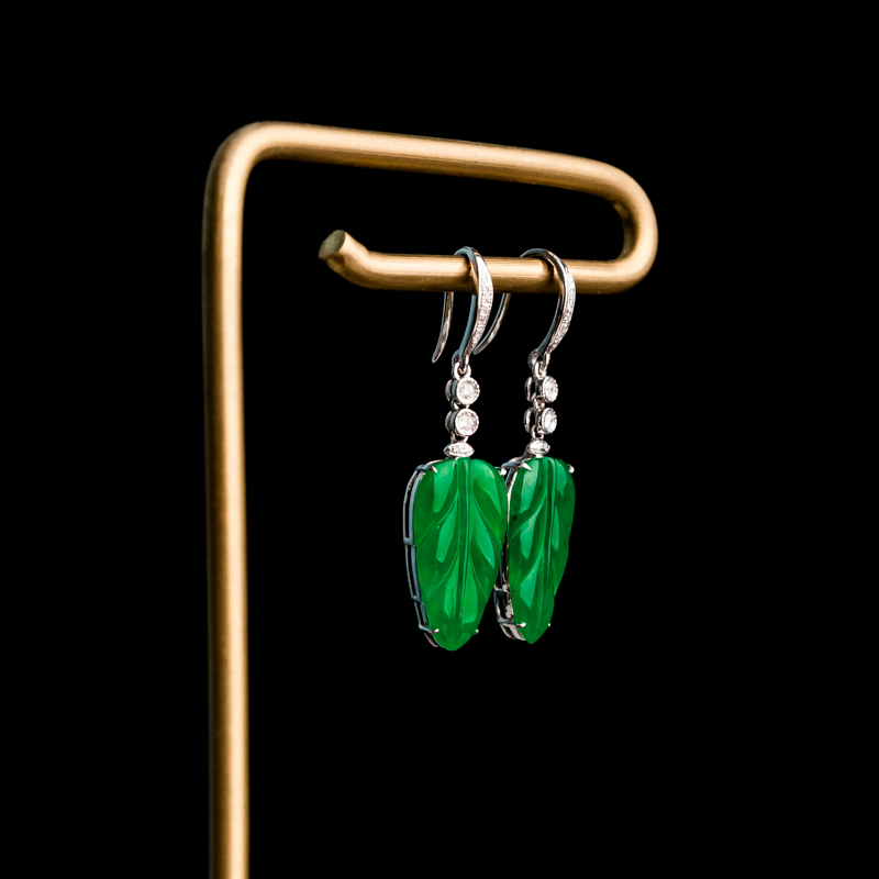 • 18K糯冰种翠绿翡翠金枝玉叶耳坠
