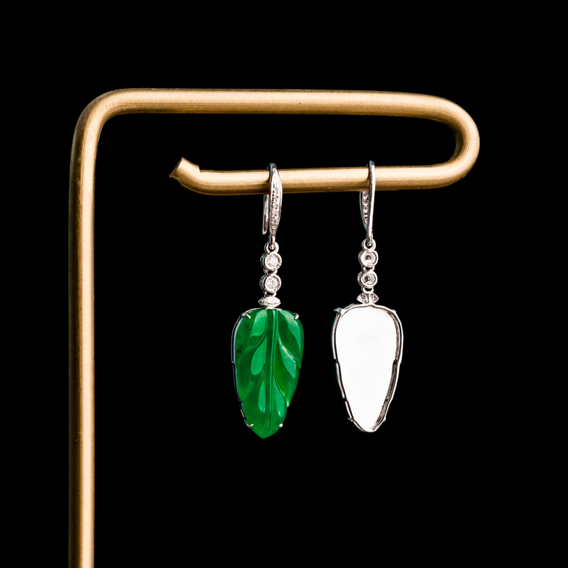 • [名  称] 18K糯冰种翠绿翡翠金枝玉叶耳坠