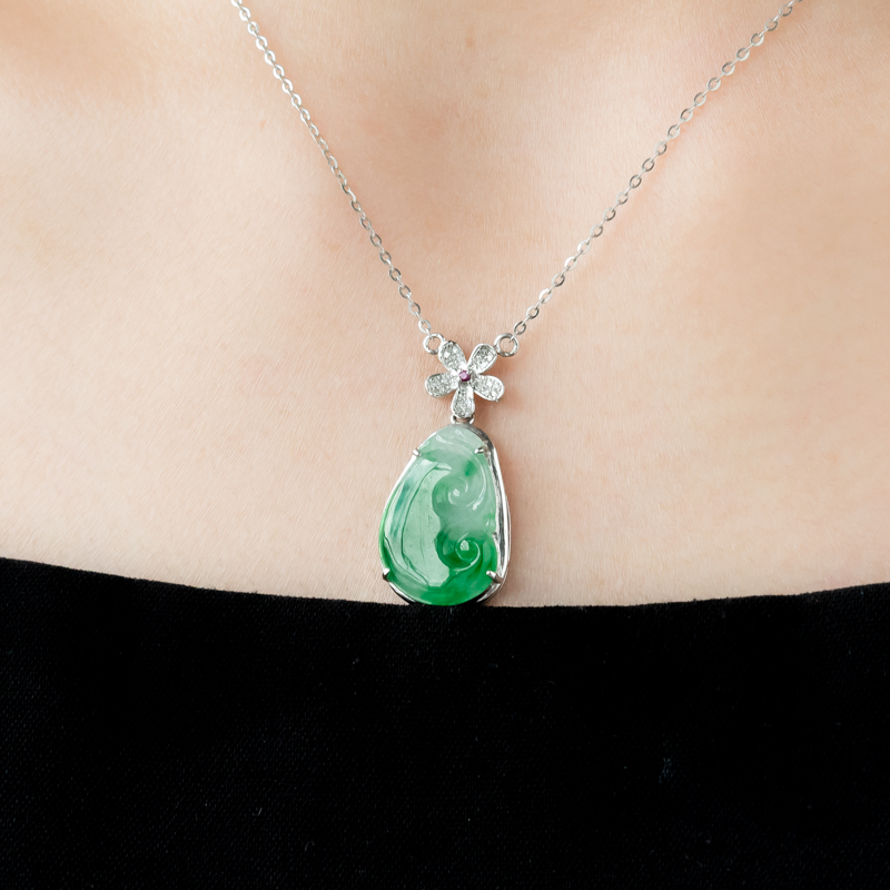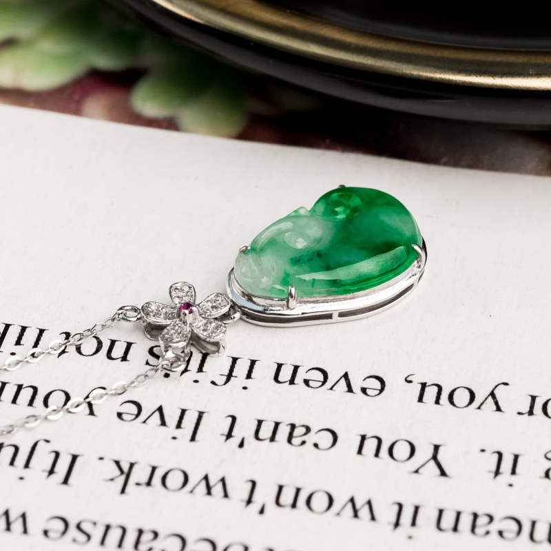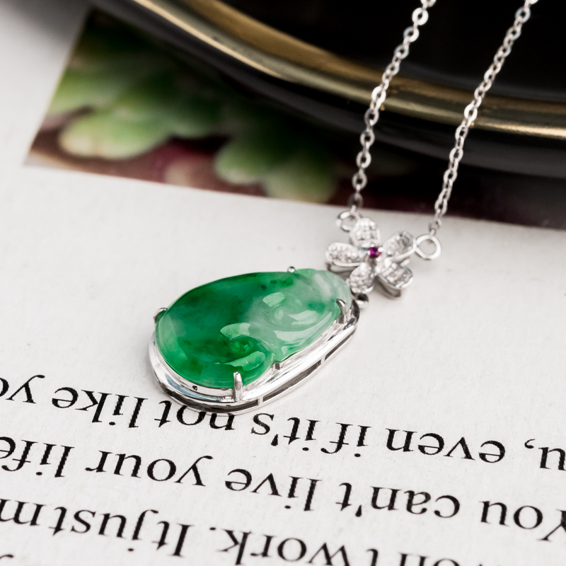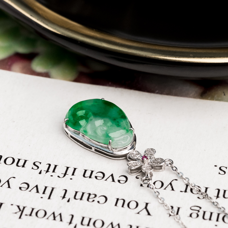 • [名  称] 18K糯冰种飘翠翡翠如意项链