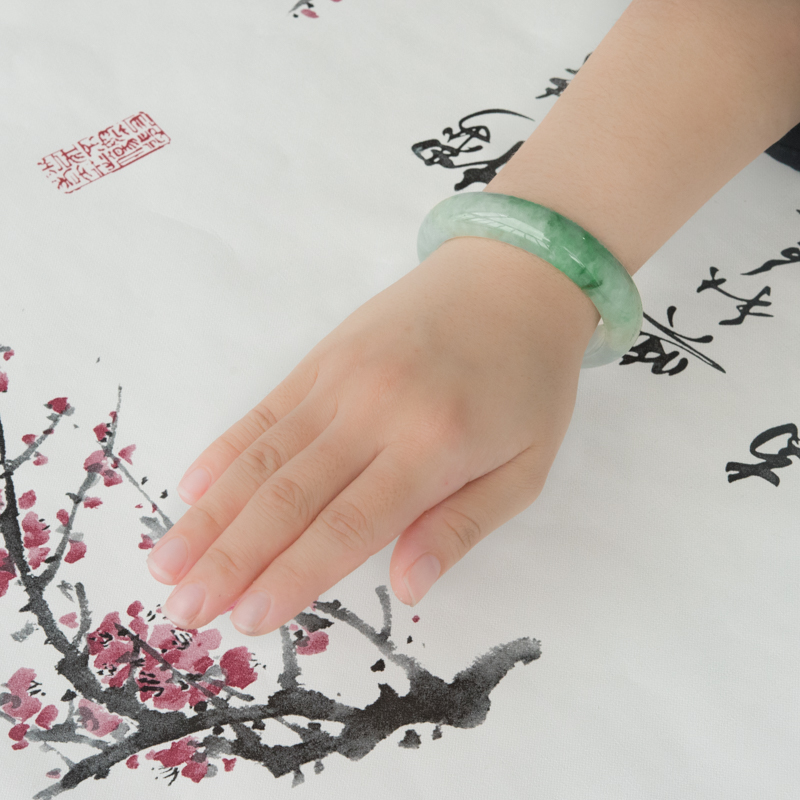 • [名  称] 56mm糯冰种飘翠翡翠平安镯