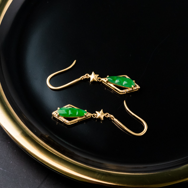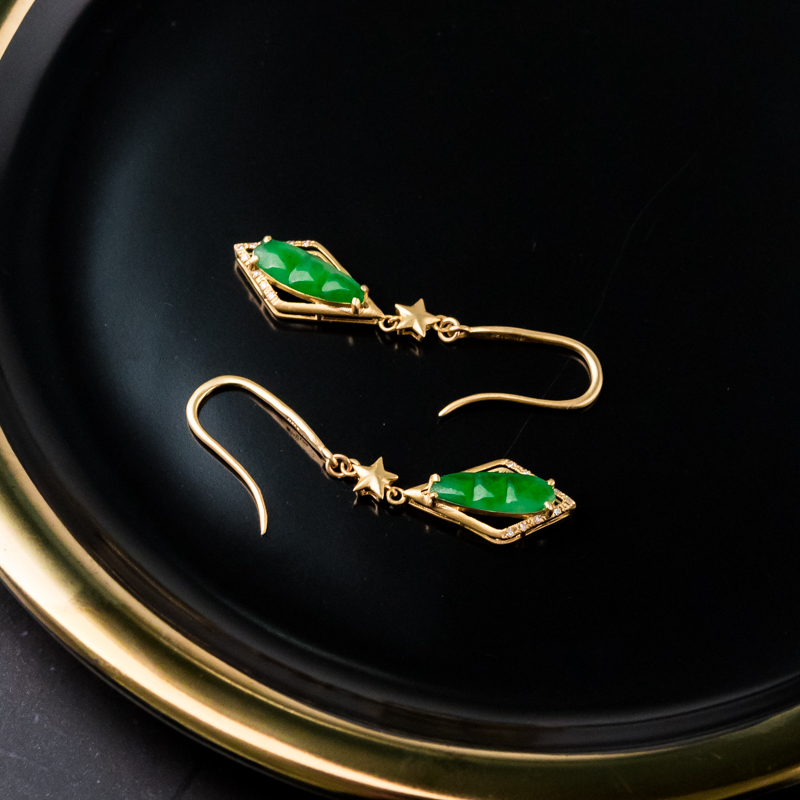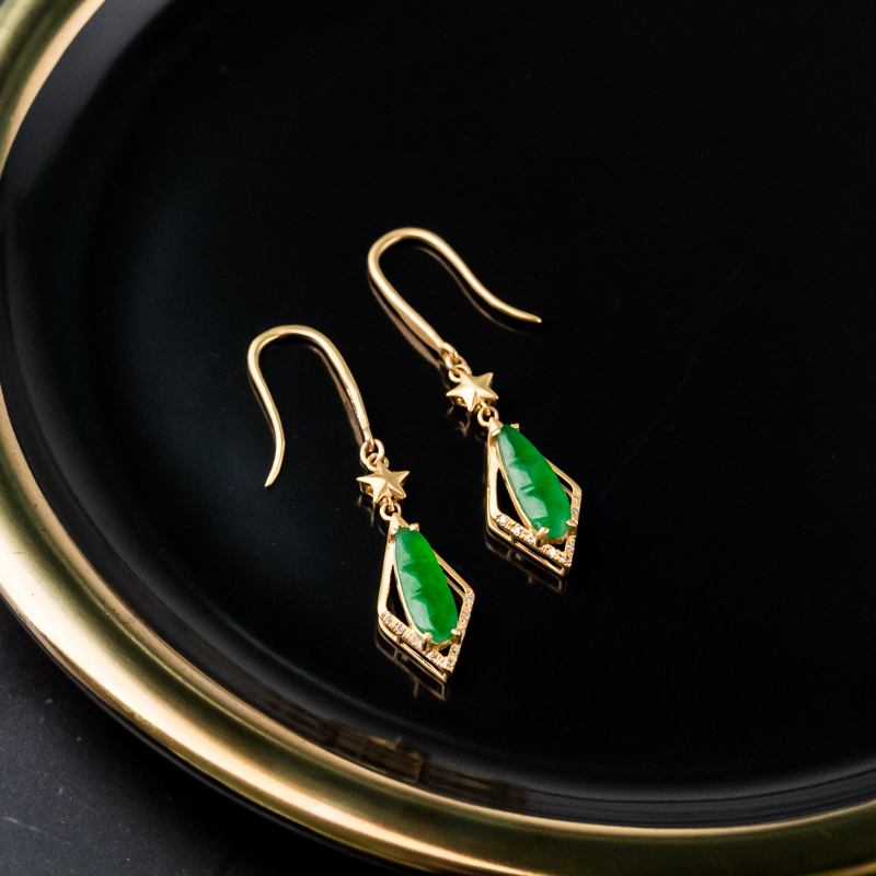 • 18K糯冰种翠绿翡翠福豆耳坠