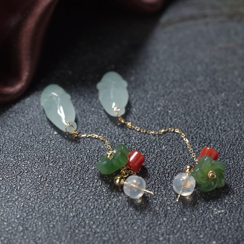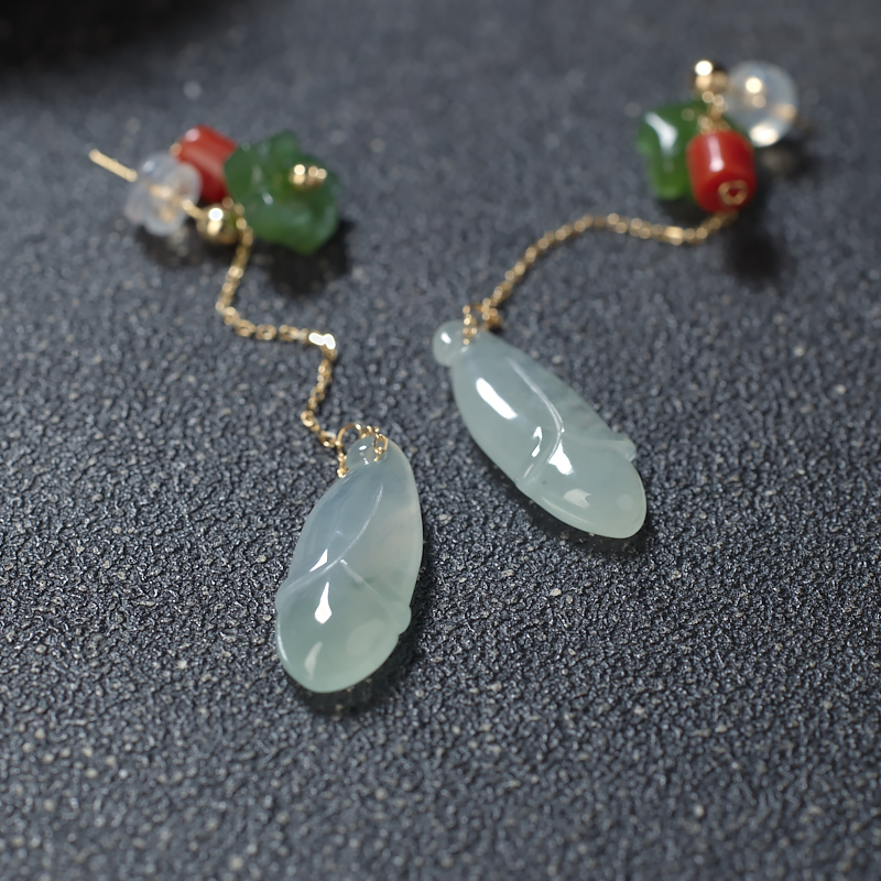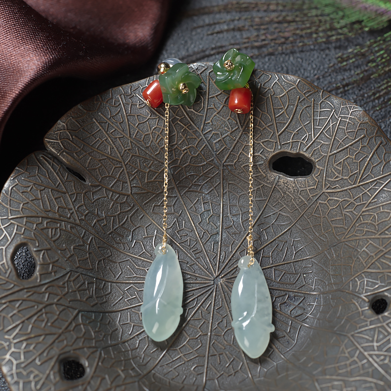• 18K糯冰种浅绿翡翠兰花耳坠