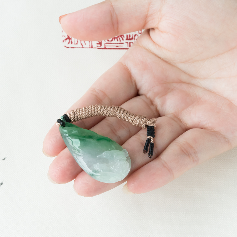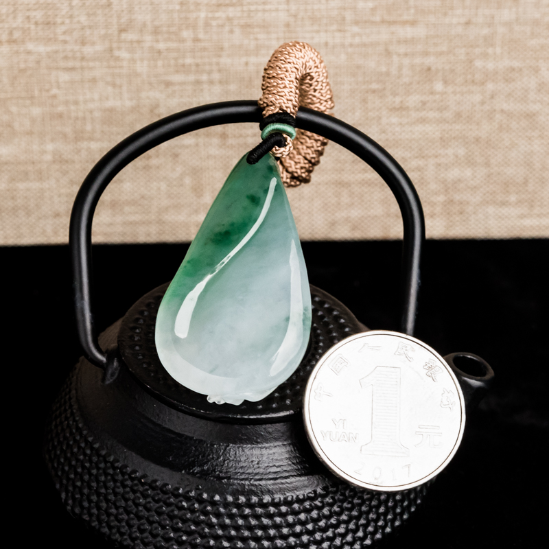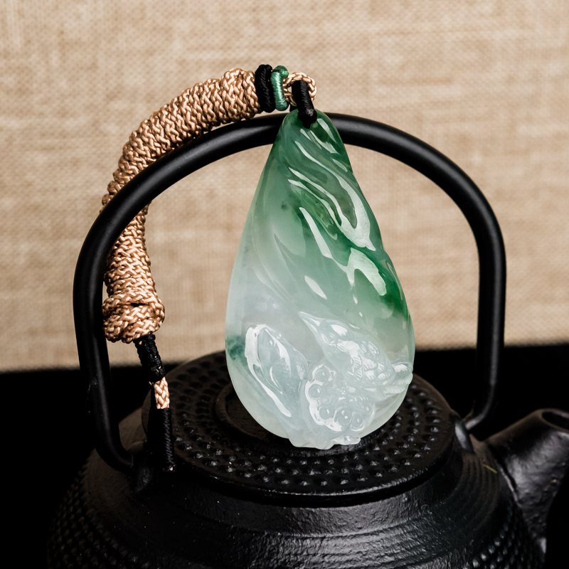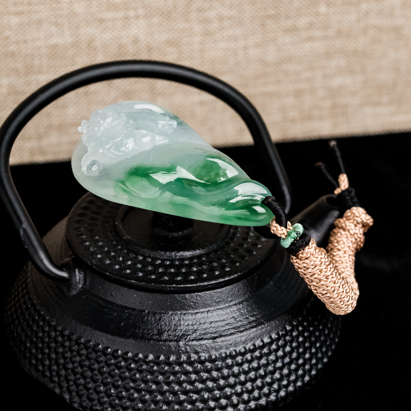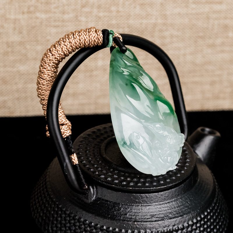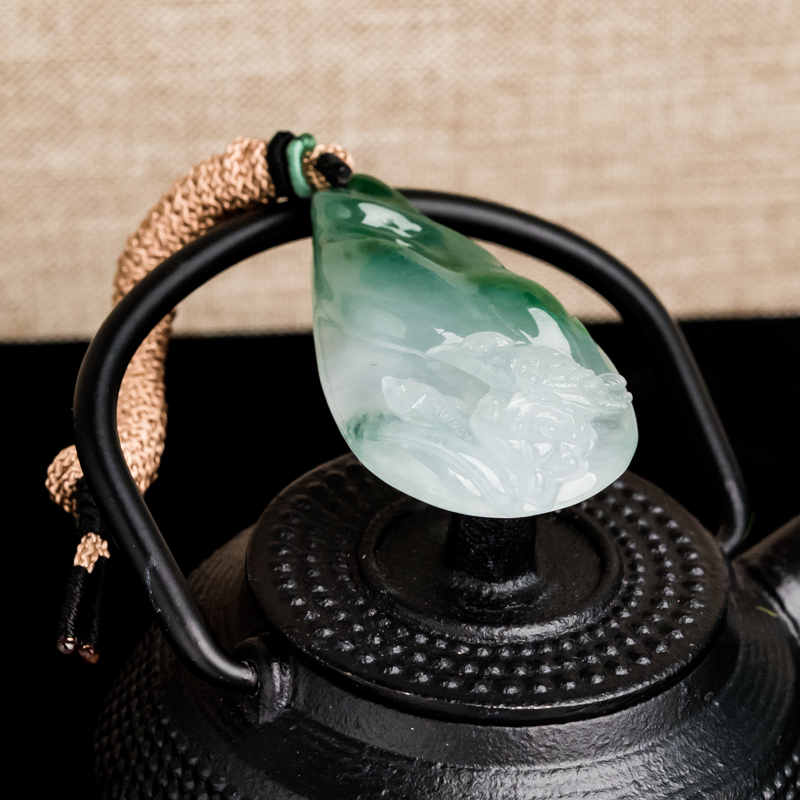 • 糯冰种飘翠翡翠荷塘清趣吊坠
