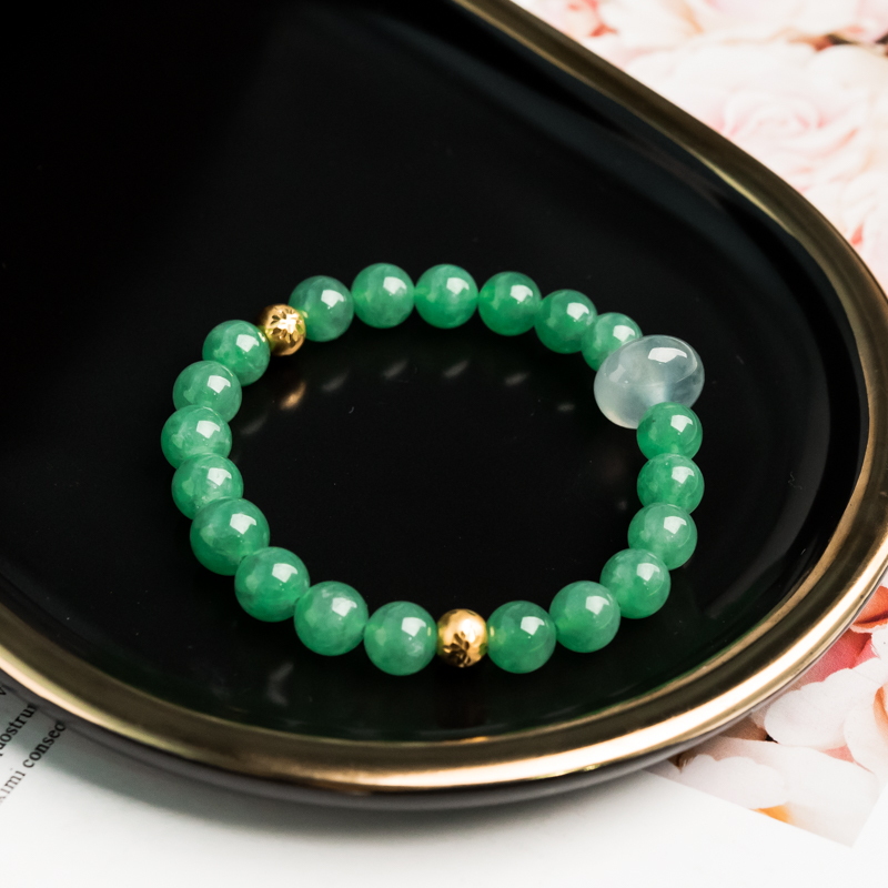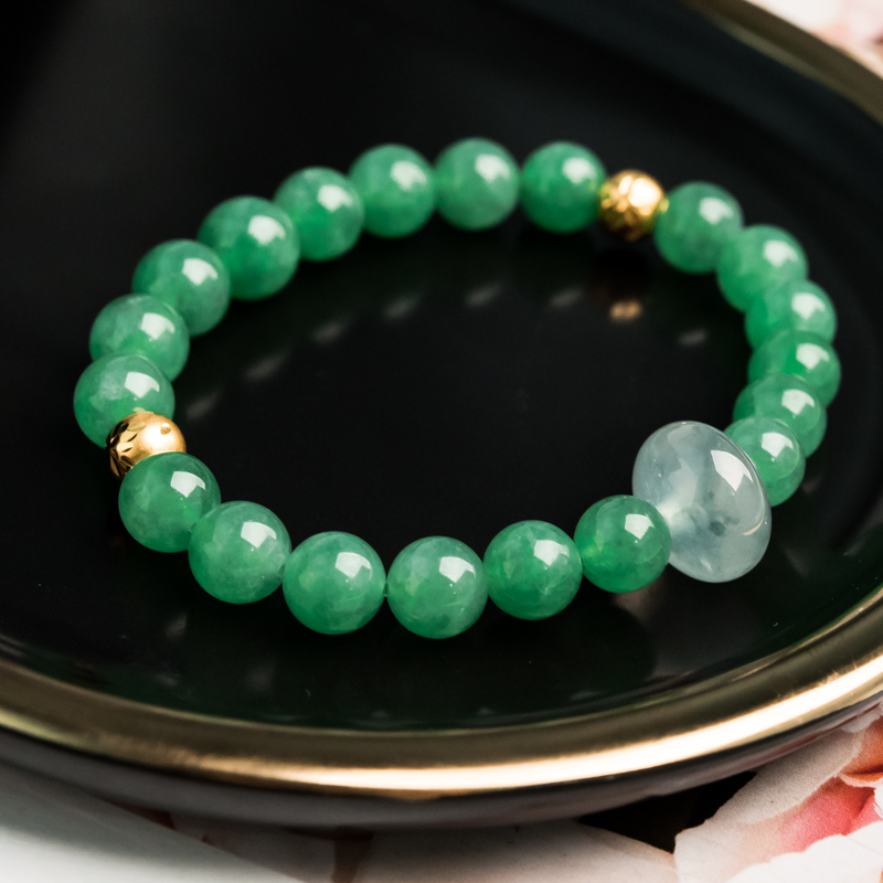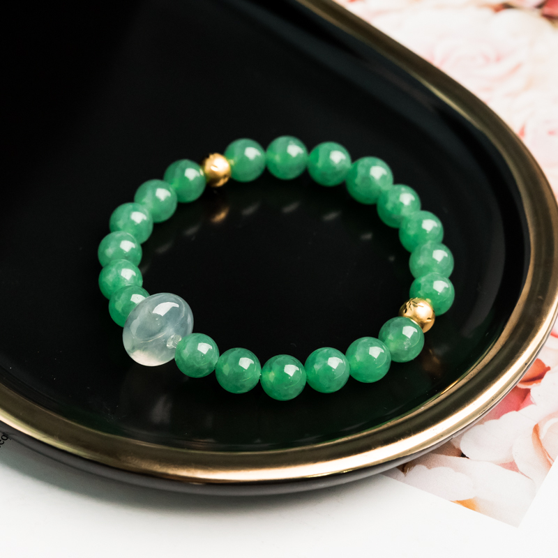 • [名  称] 糯冰种豆绿翡翠单圈手串