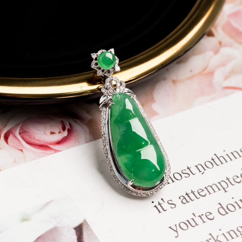 • [名  称] 18K糯冰种翠绿翡翠福豆吊坠