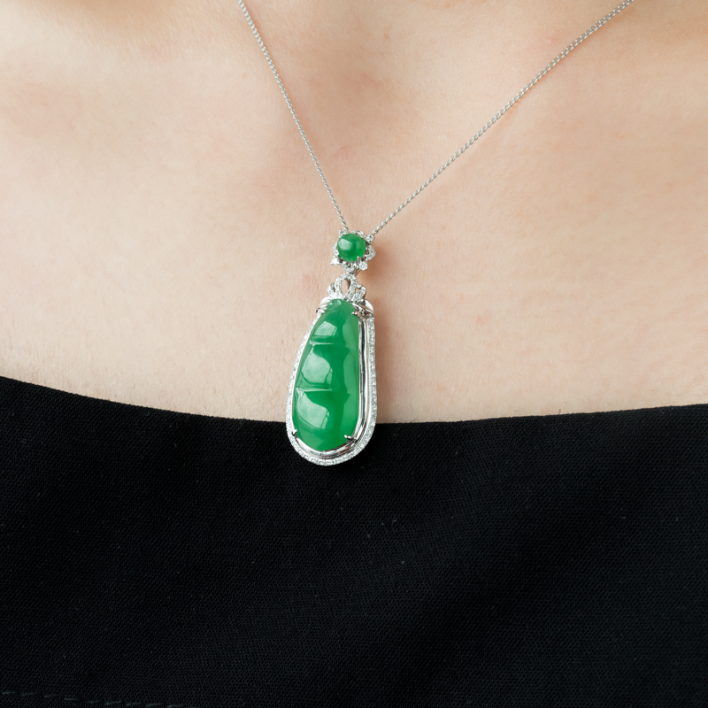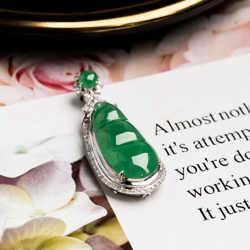 • 18K糯冰种翠绿翡翠福豆吊坠