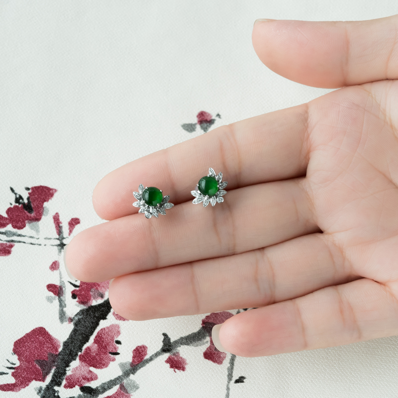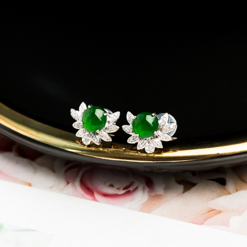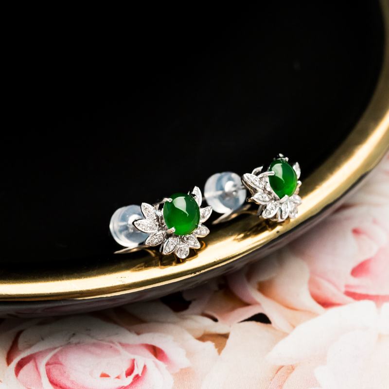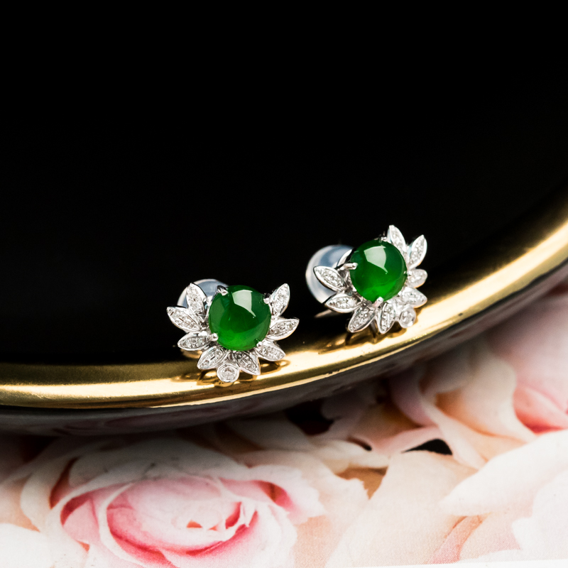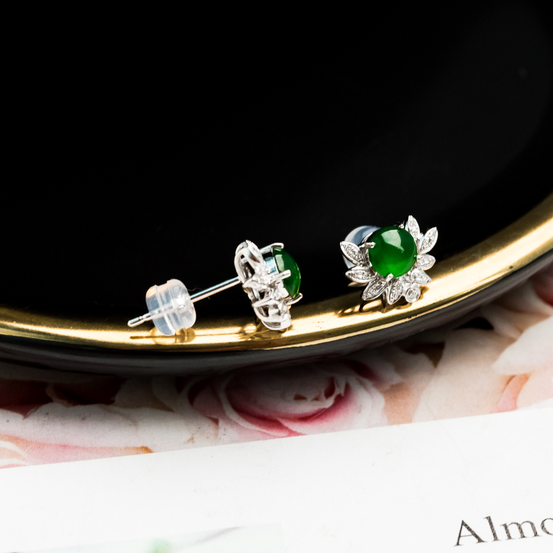 • [名  称] 18K糯冰种翠绿翡翠耳钉
