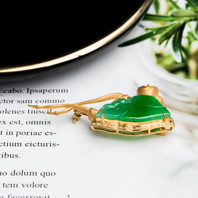 • [名  称] 18K糯冰种翠绿翡翠精灵两用款