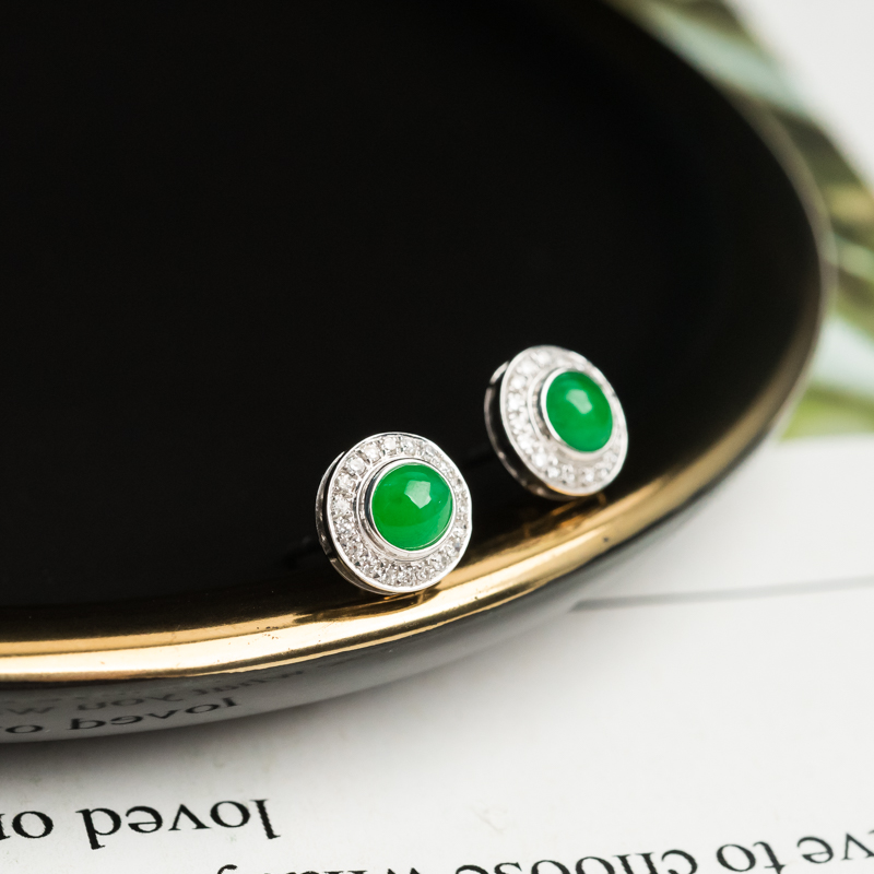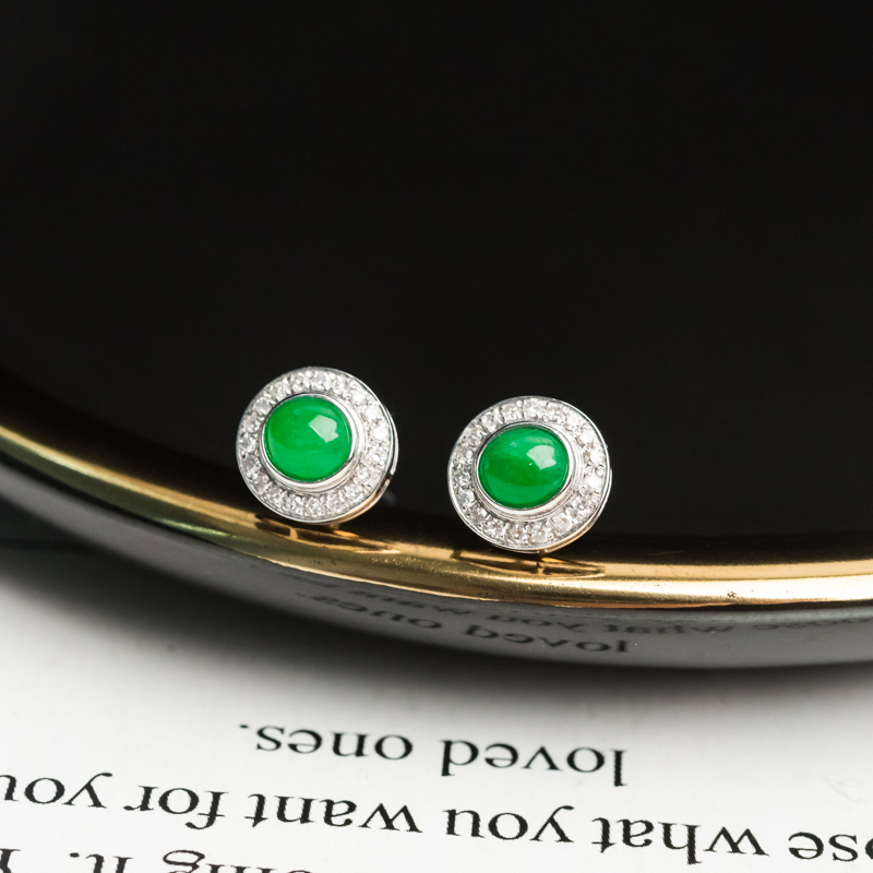 • [名  称] 18K糯冰种翠绿翡翠耳钉