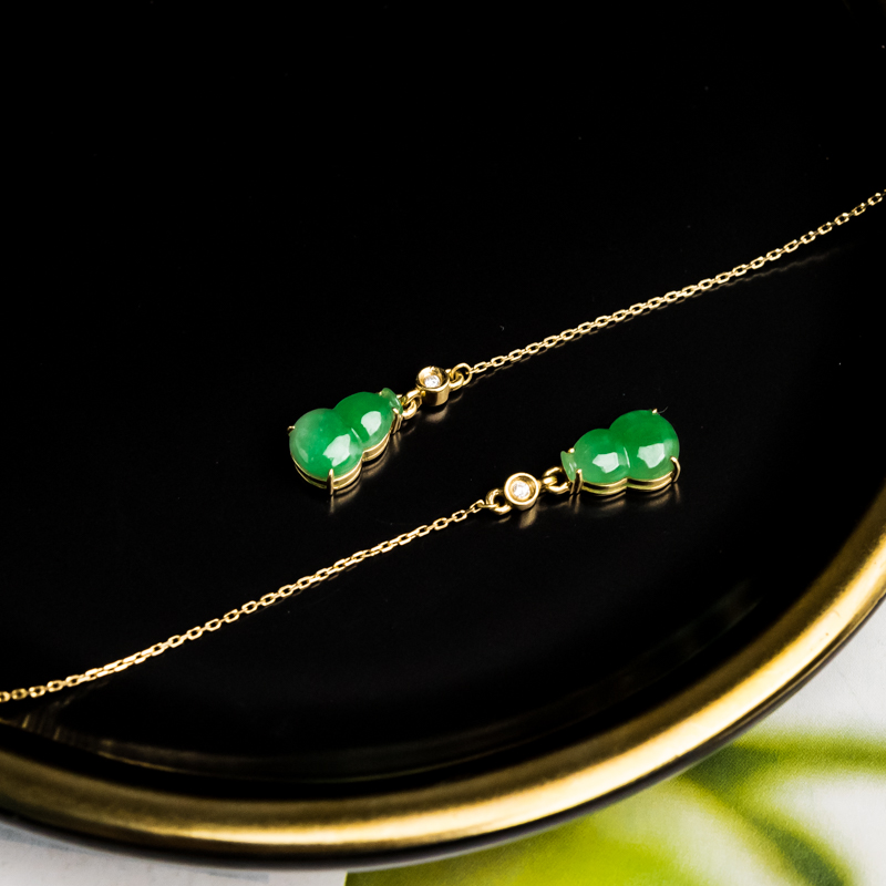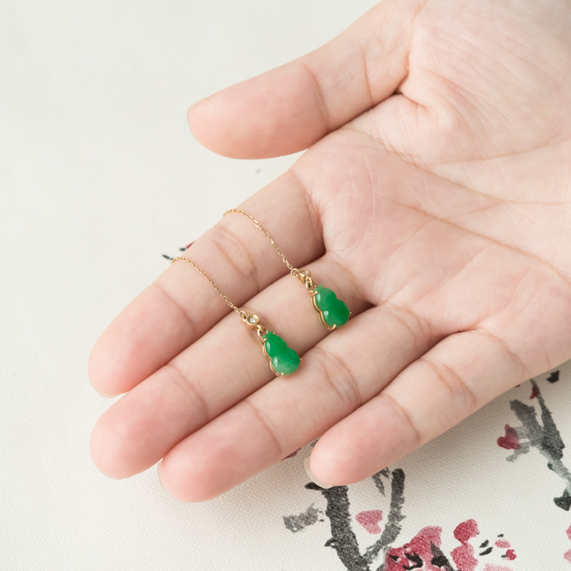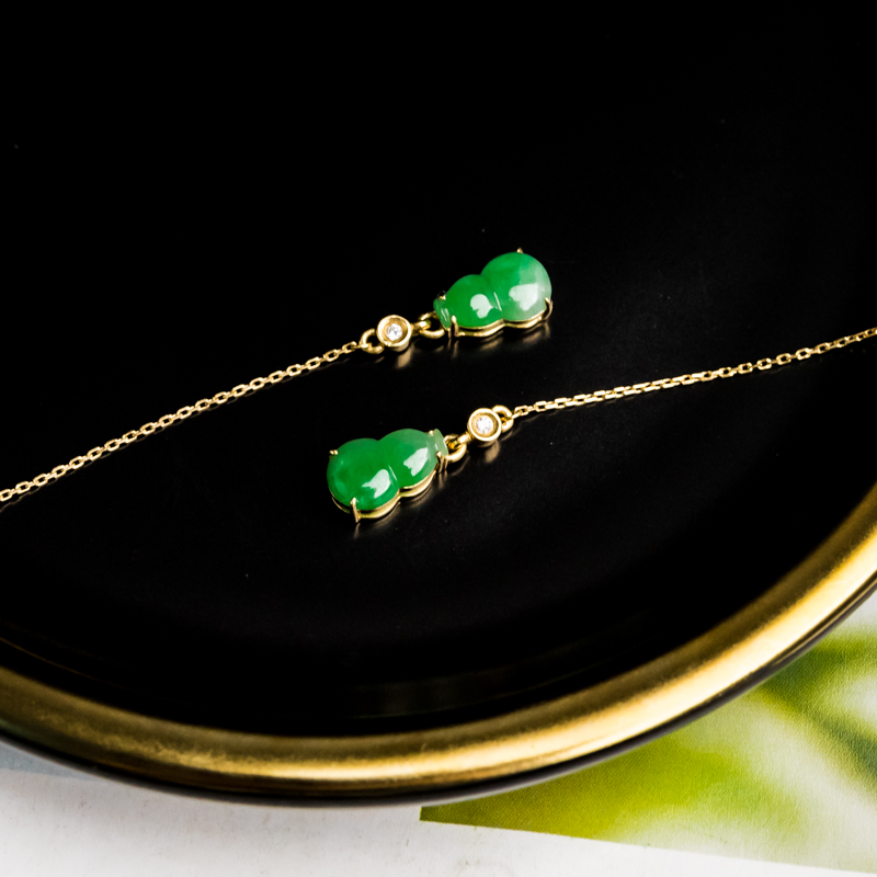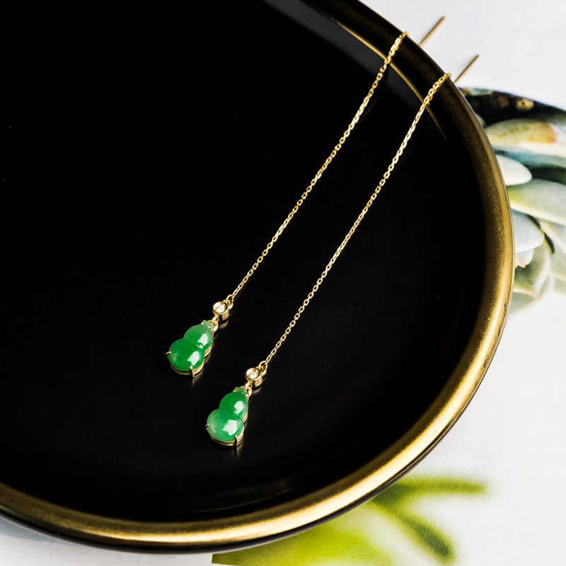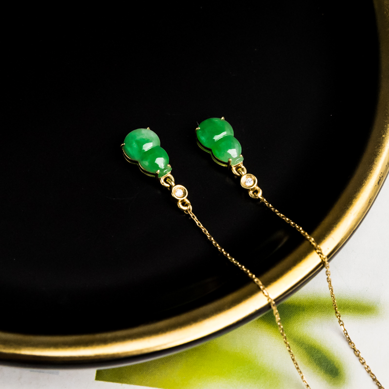 • [名  称] 18K糯冰种翠绿翡翠福禄耳坠