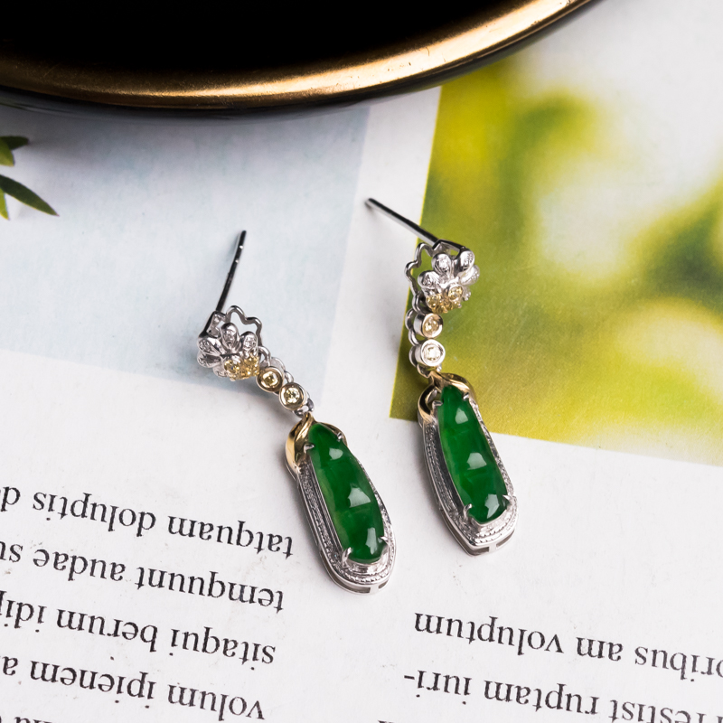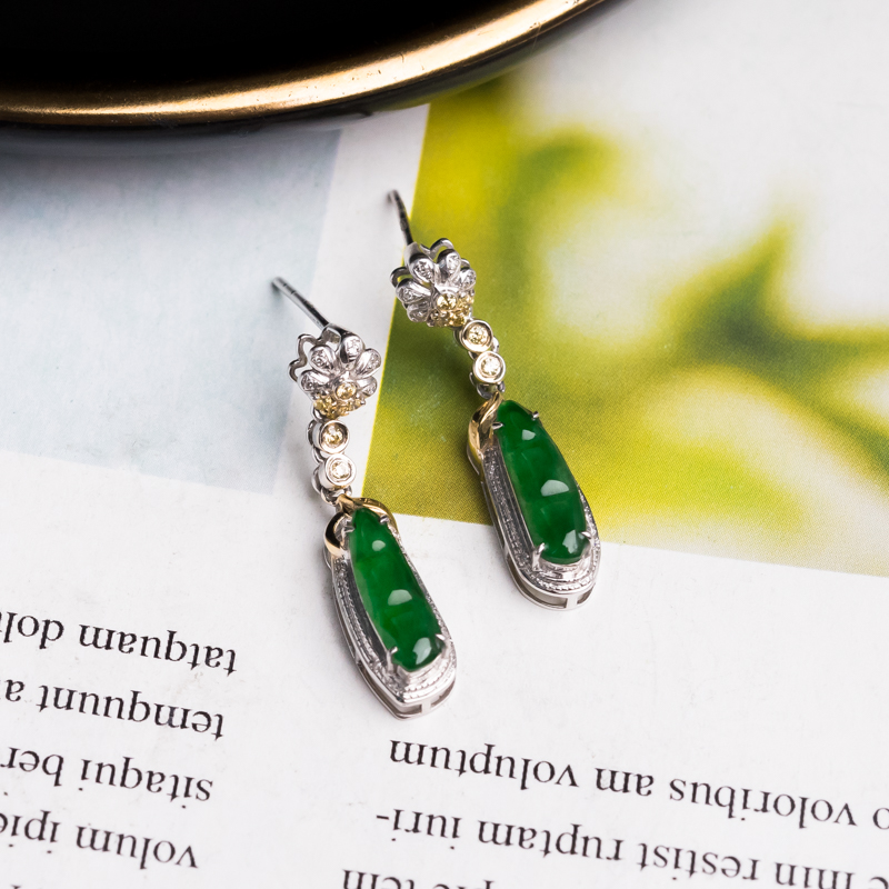 • [名  称] 18K糯冰种翠绿翡翠福豆耳坠