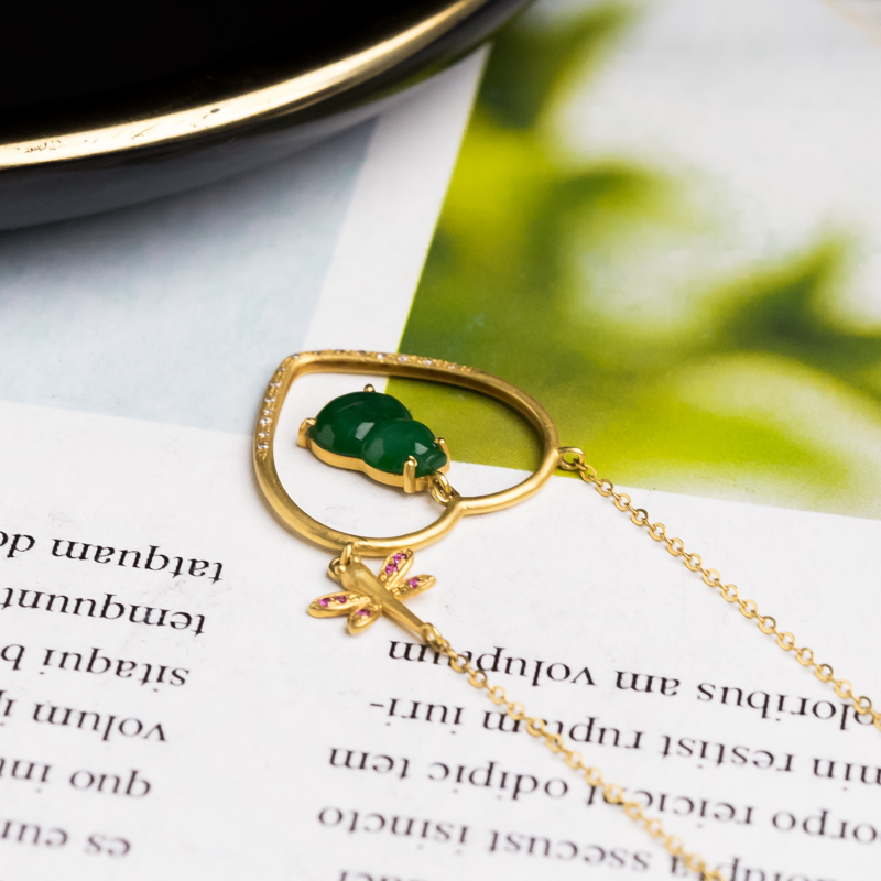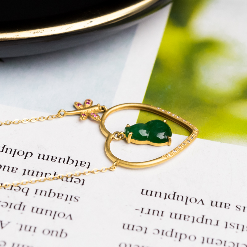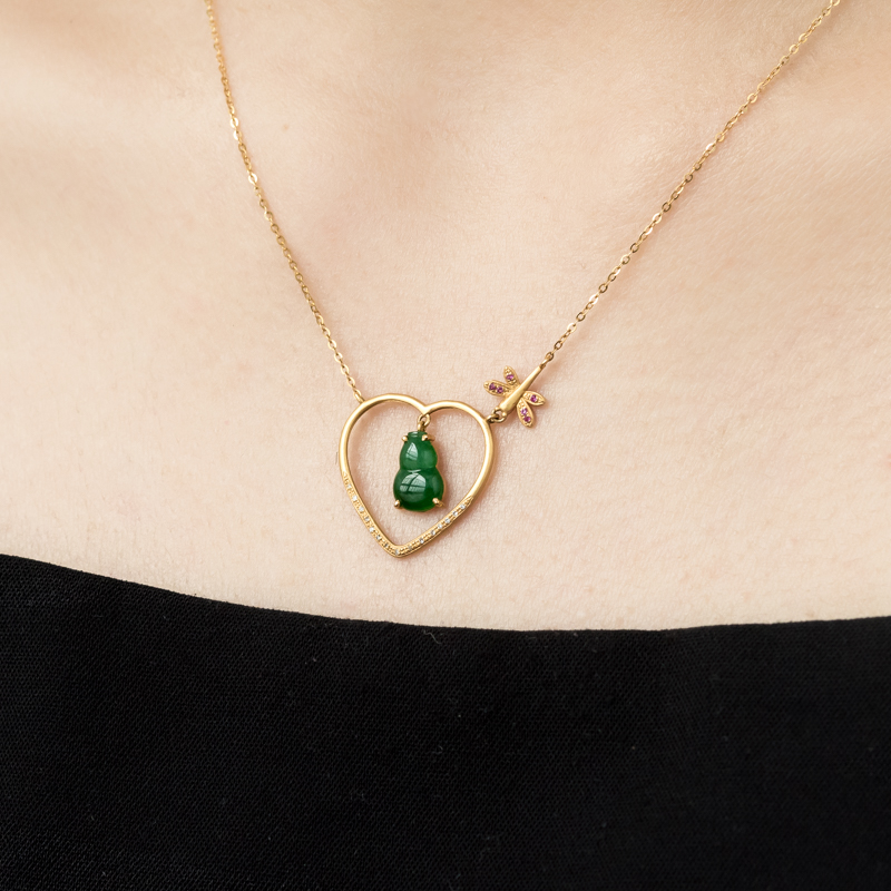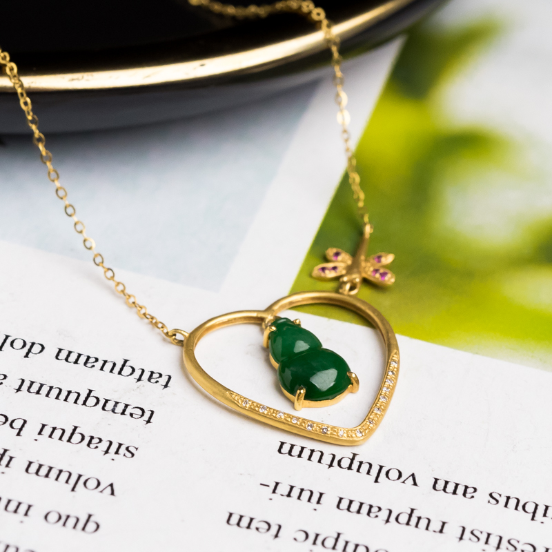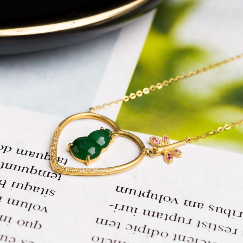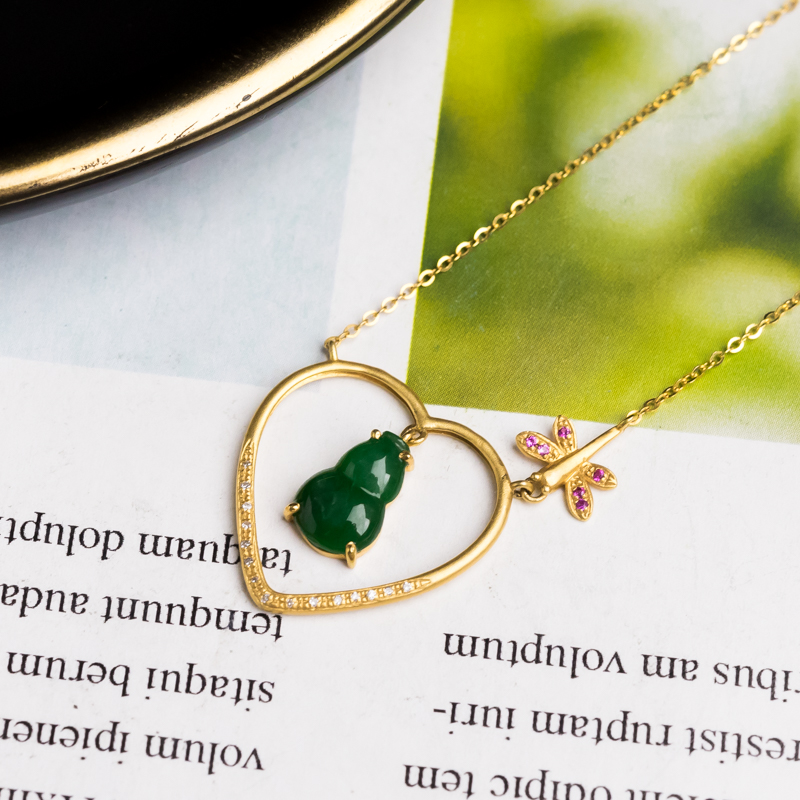 • [名  称] 18K糯冰种翠绿翡翠福禄项链